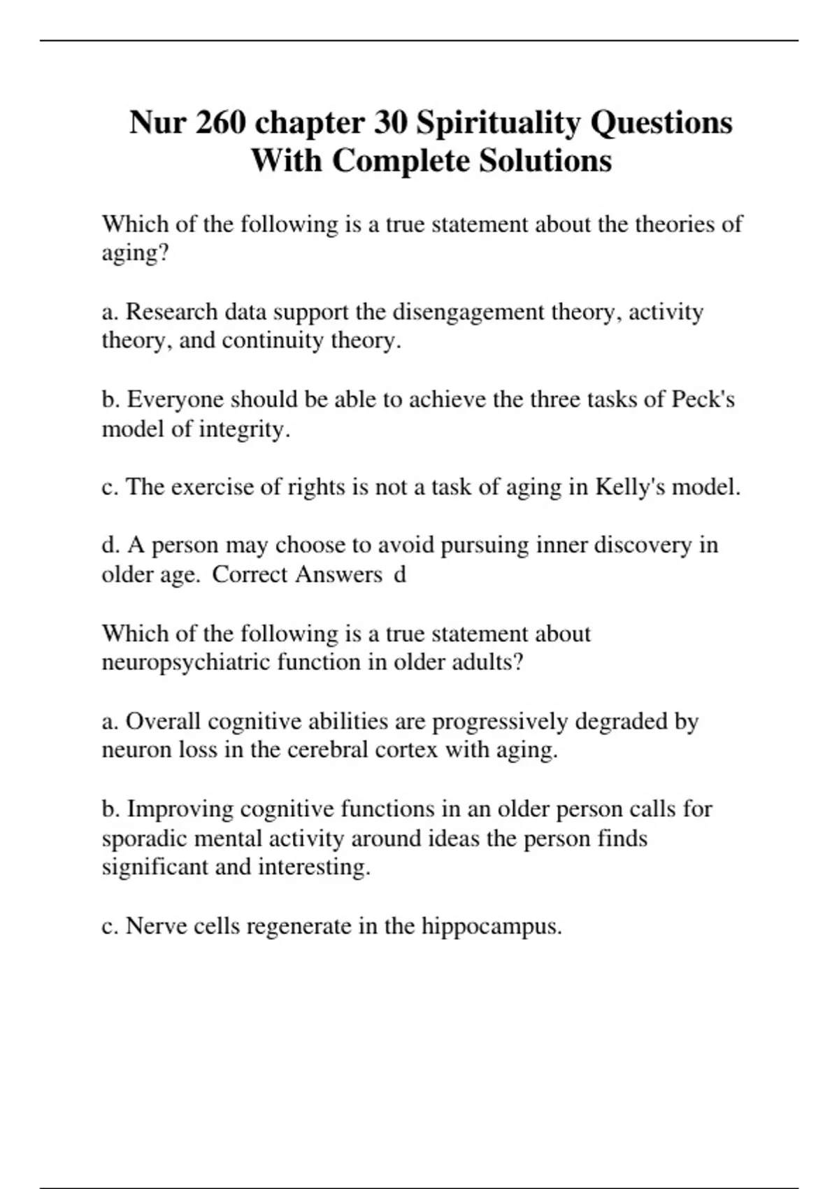 Nur 260 chapter 30 Spirituality Questions With Complete Solutions