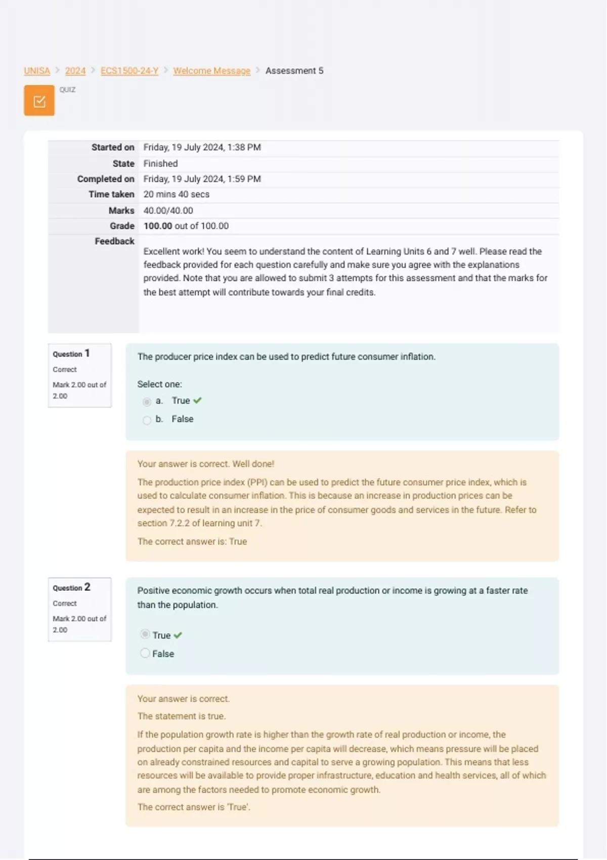 Excellent work! You seem to understand the content of Learning Units 6 and 7 well. Please read the