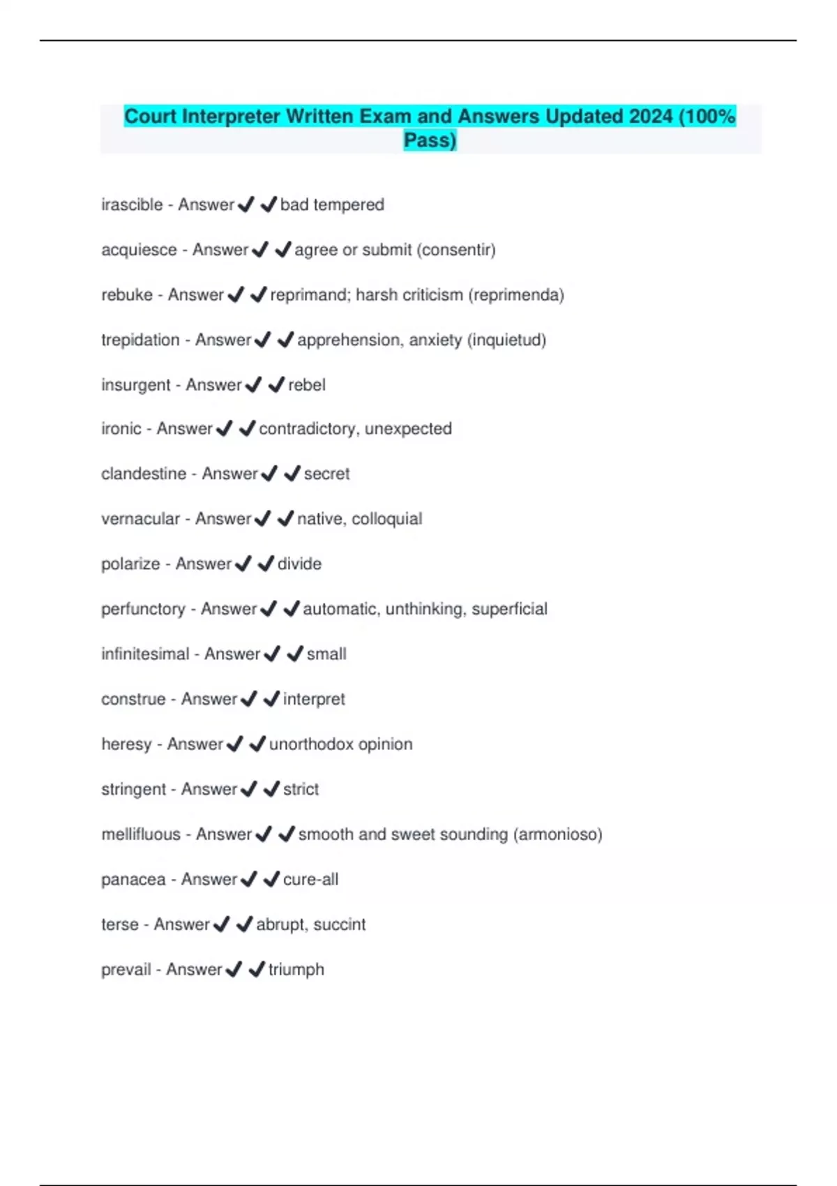 Court Interpreter Written Exam and Answers Updated 2024 (100% Pass)