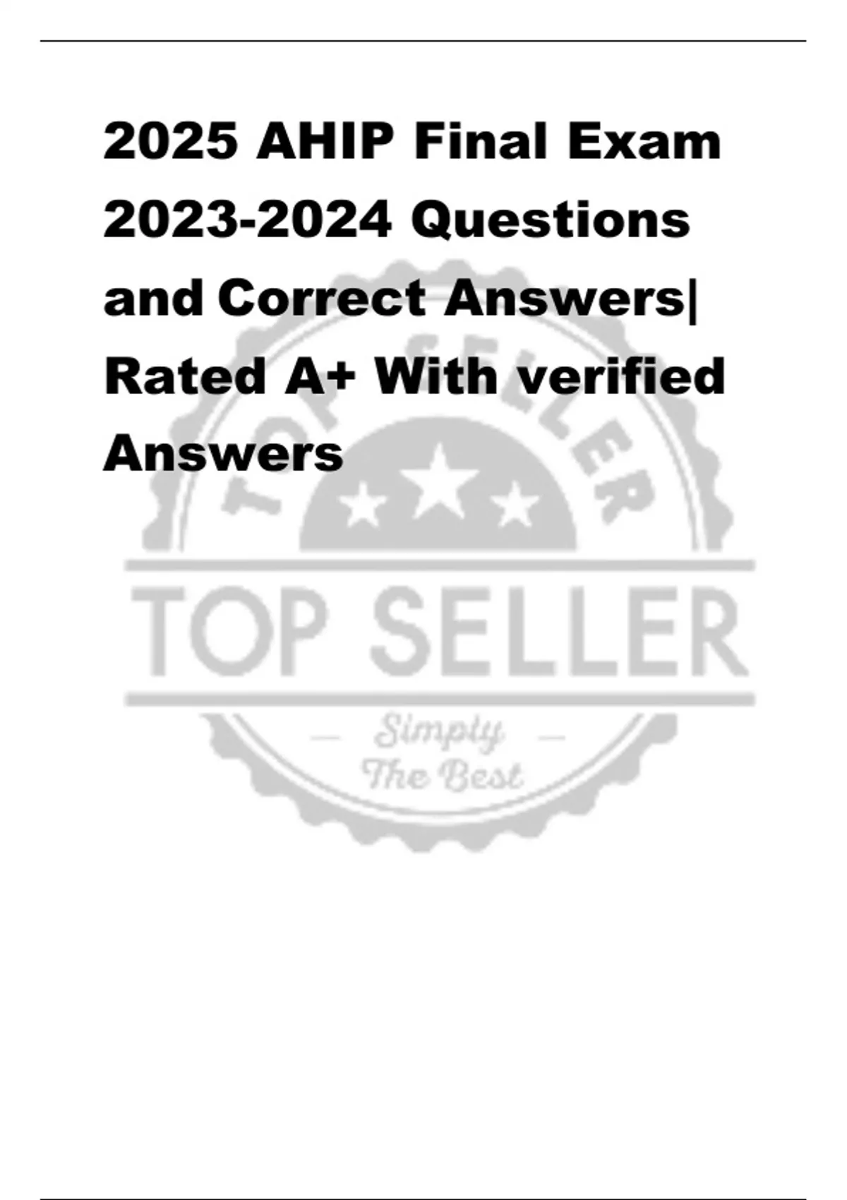 2025 AHIP Final Exam Questions and Correct Answers| Rated A+ With verified Answers