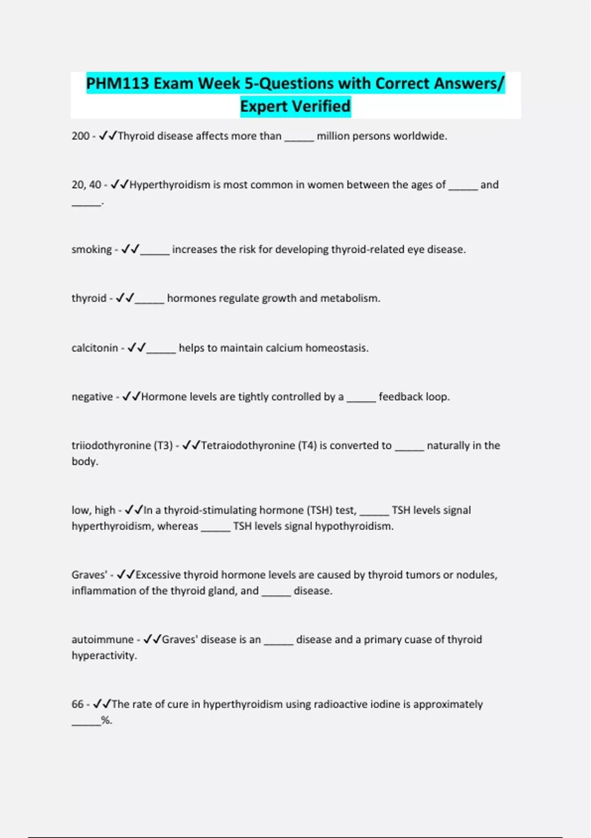 PHM113 Exam Week 5-Questions with Correct Answers/ Expert Verified