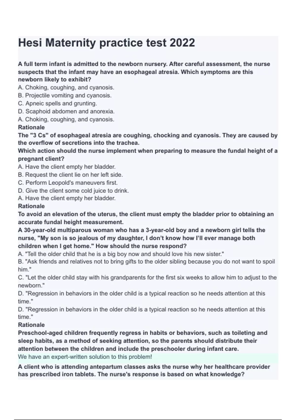 Hesi Maternity practice test 2022 version test questions answers grade) (2023/ 2024 Update)
