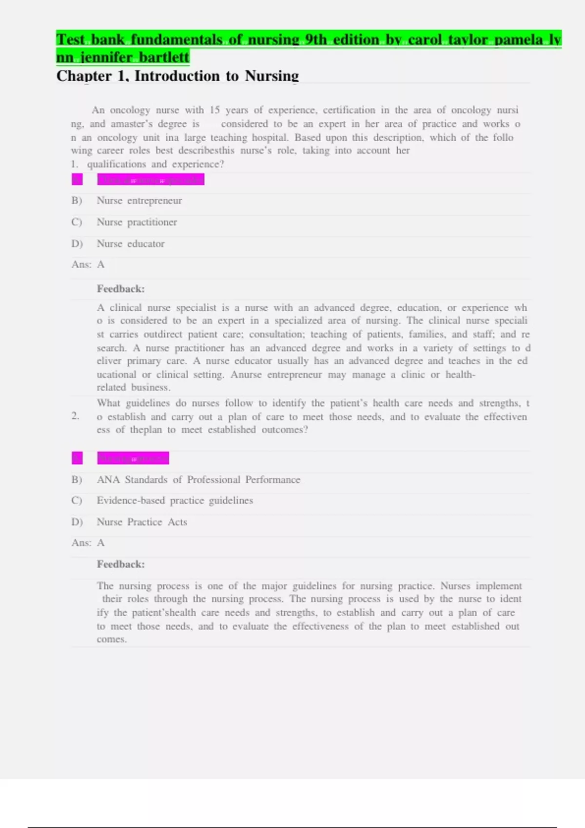 earcher. Conducting FFaFFclient FFinterview FFwould FFfall FFunder FFthe FFrole FFofFFthe FFcaregiver. 8. AFFnurse FFinstructor FFexplains FFthe FFconcept FFofFFhealth FFtoFFher FFstudents. FFWhich FFofFFthe FFfollowi