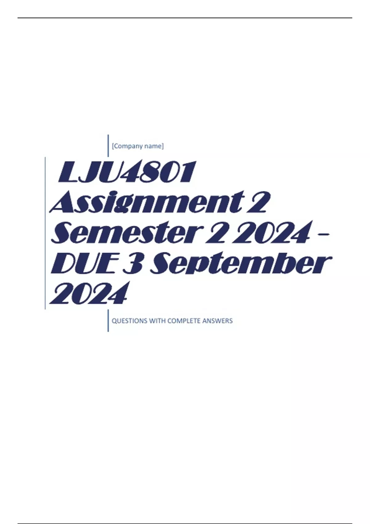 QUESTIONS WITH COMPLETE LJU4801 Assignment 2 Semester 2 2024 - DUE 3 September 2024
