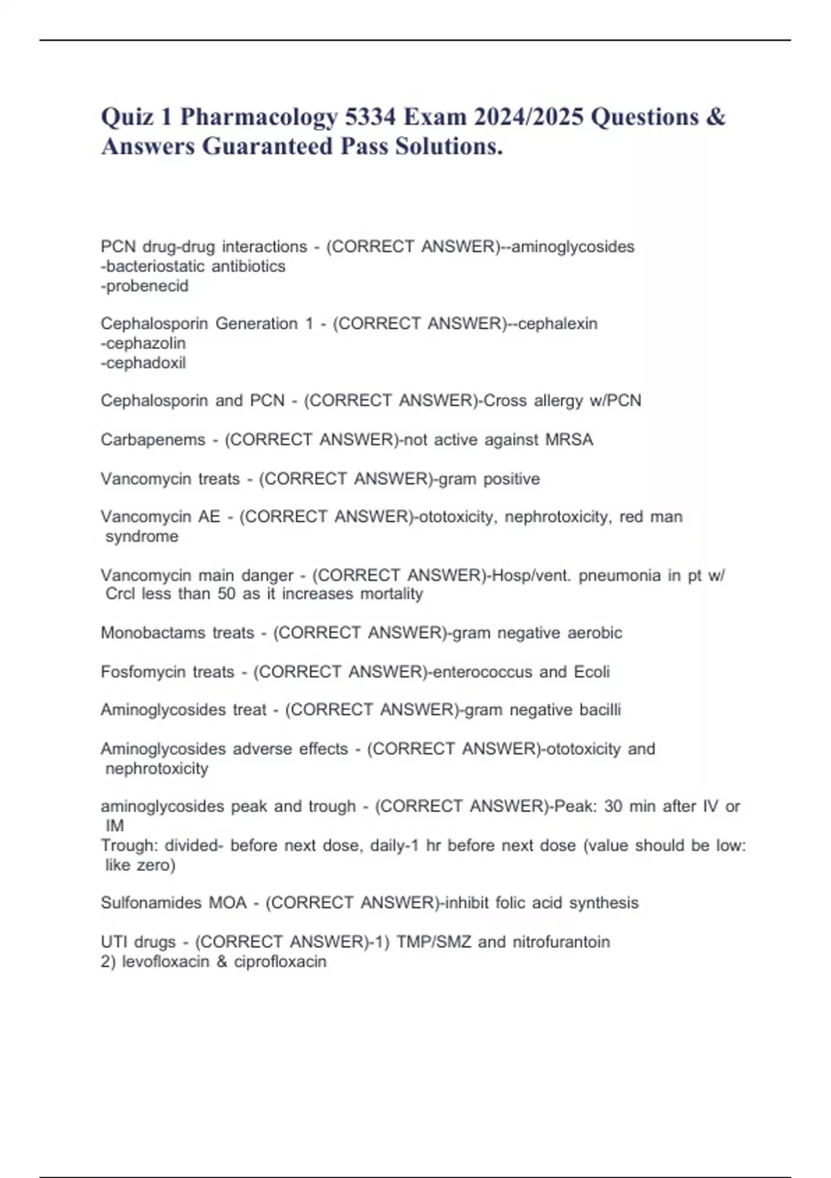 Quiz 1 Pharmacology 5334 Exam 2024/2025 Questions & Answers Guaranteed Pass Solutions.