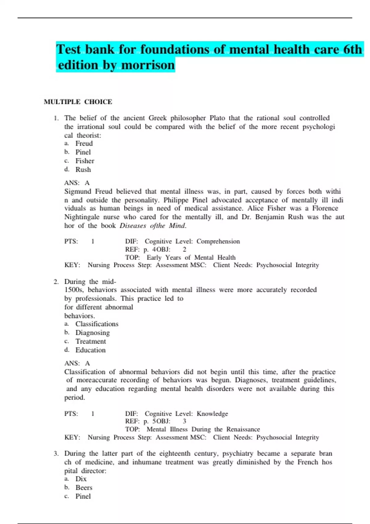 Test bank for foundations of mental health care 6th edition by morrisonTest bank for foundations of mental health care 6th edition by morrison