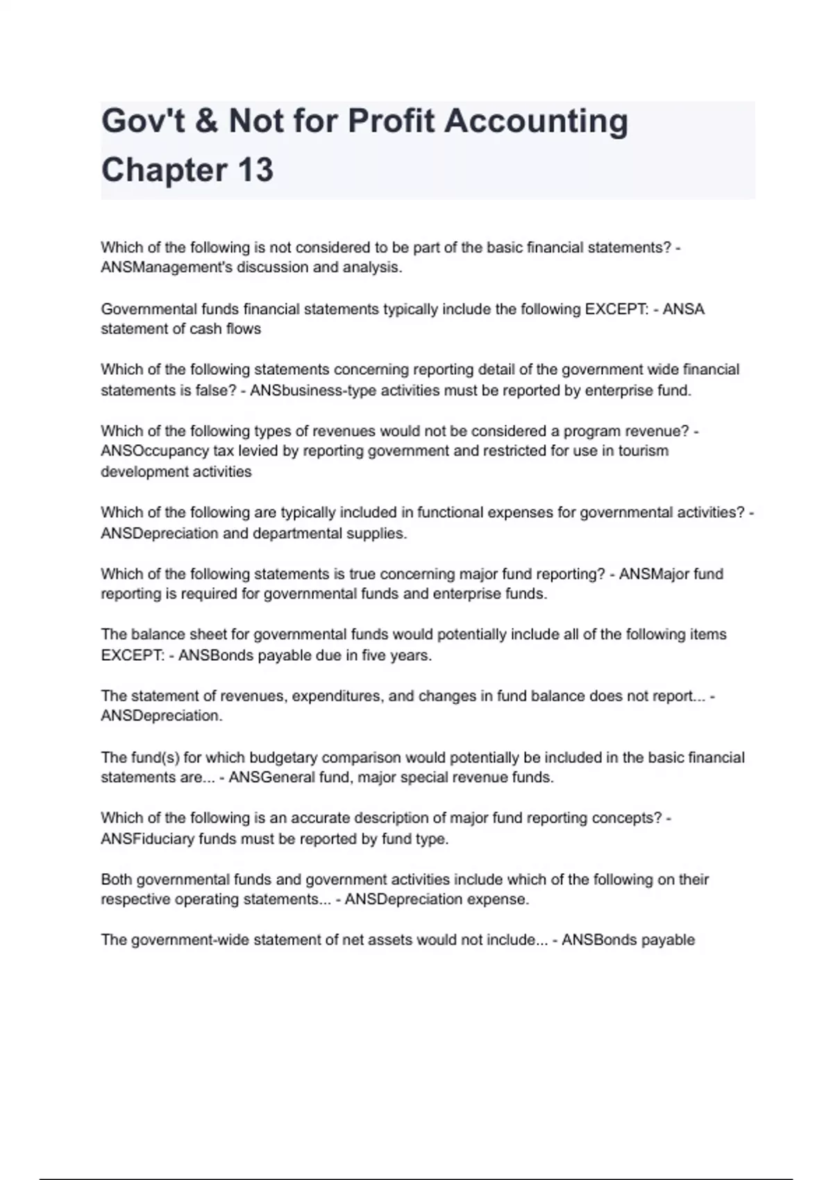 Gov't & Not for Profit Accounting Chapter 13 Test Bank