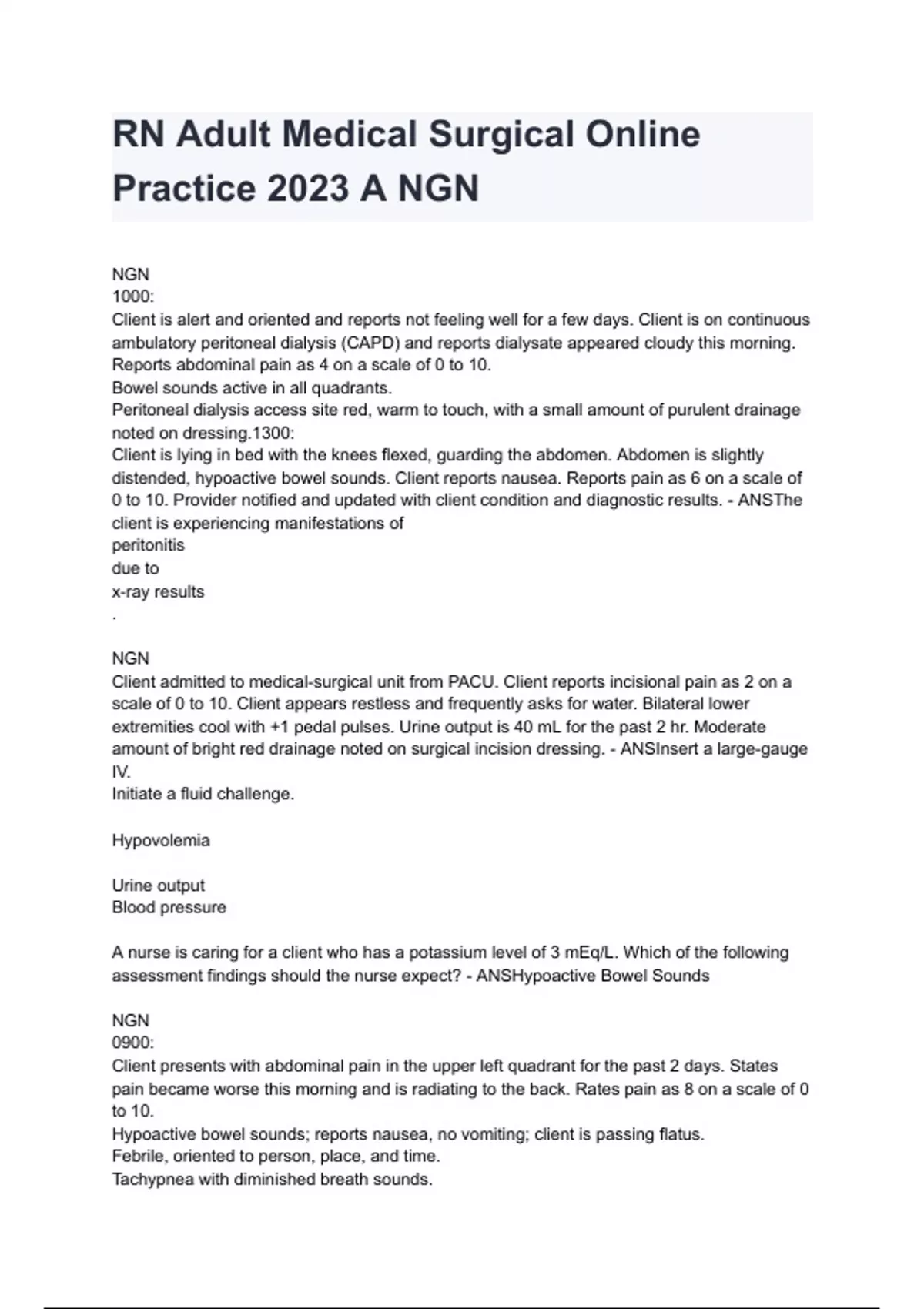 RN Adult Medical Surgical Online Practice 2023 A NGN