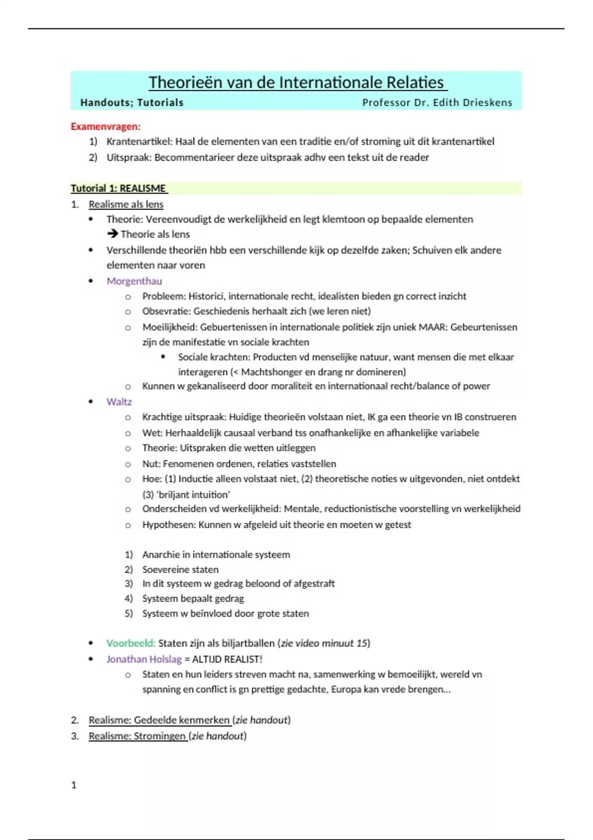 o Probleem: Historici, internationale recht, idealisten bieden gn correct inzicht