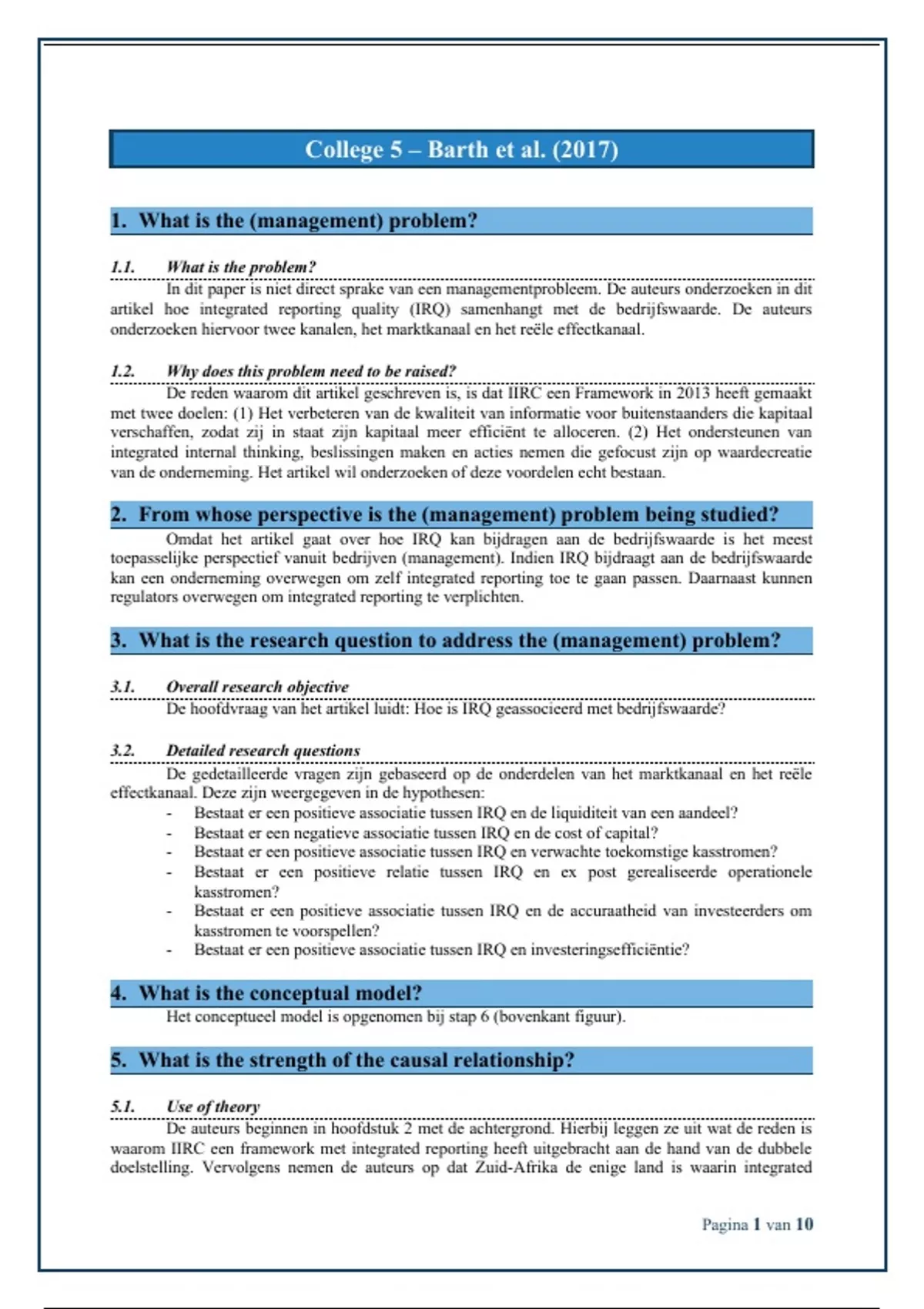 artikel hoe integrated reporting quality (IRQ) samenhangt met de bedrijfswaarde. De auteurs