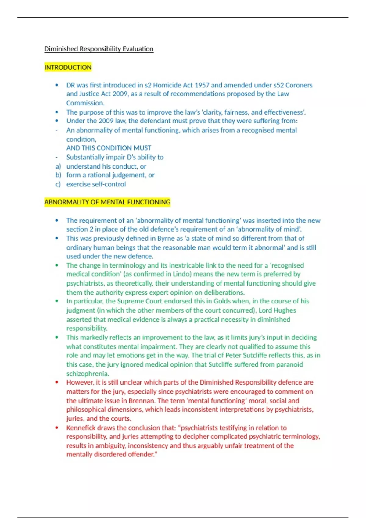 However, it is still unclear which parts of the Diminished Responsibility defence are