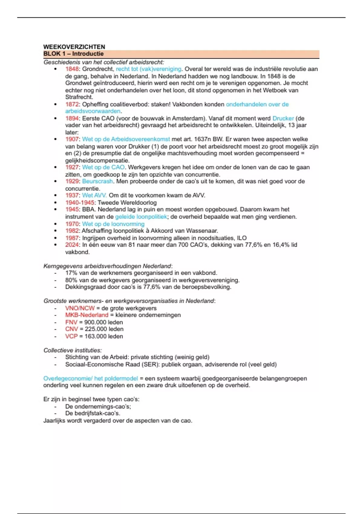 Samenvatting Weekoverzichten collectief arbeidsrecht