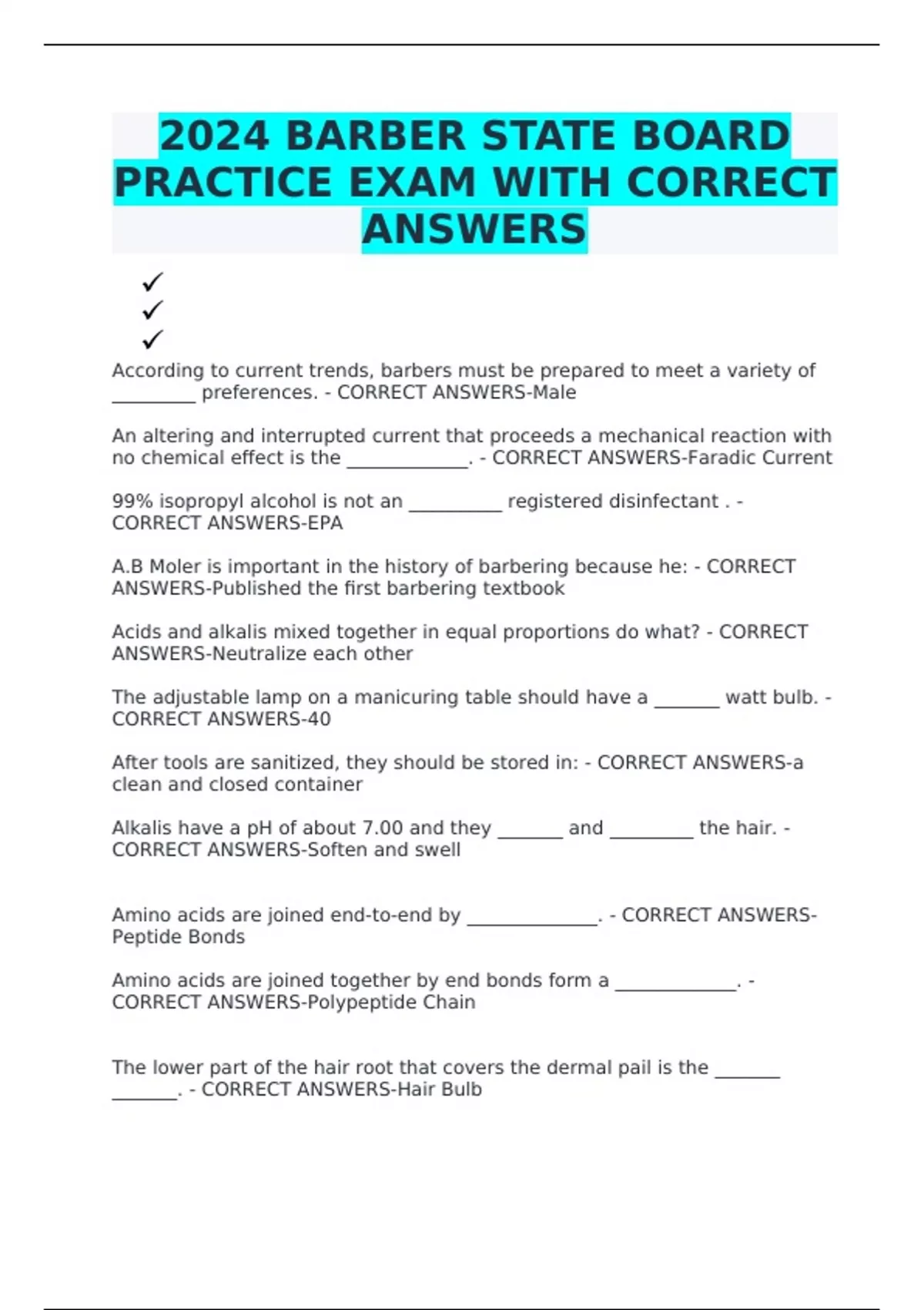According to current trends, barbers must be prepared to meet a variety of _________ preferences. - CORRECT ANSWERS-Male