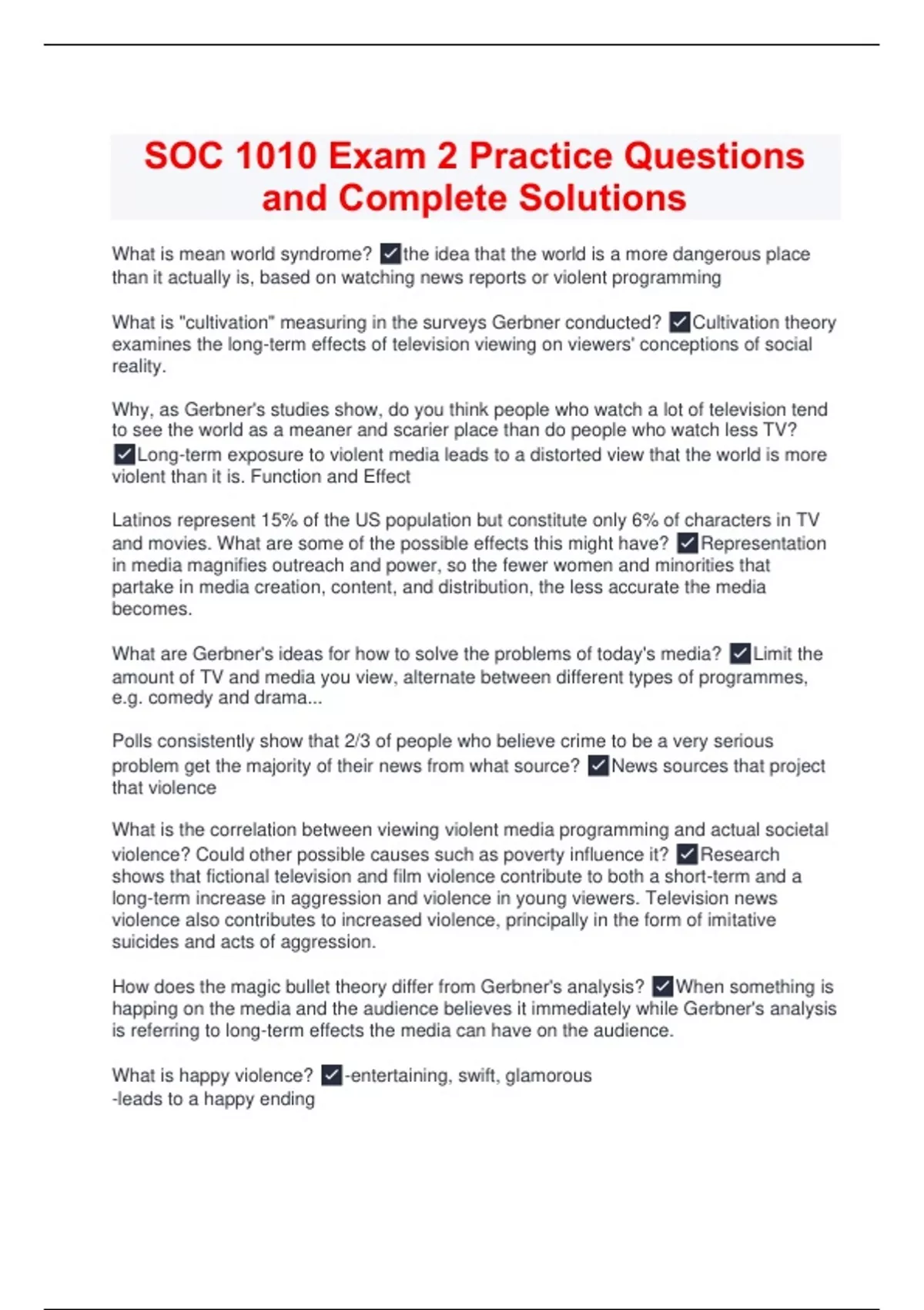 SOC 1010 Exam 2 Practice Questions and Complete Solutions