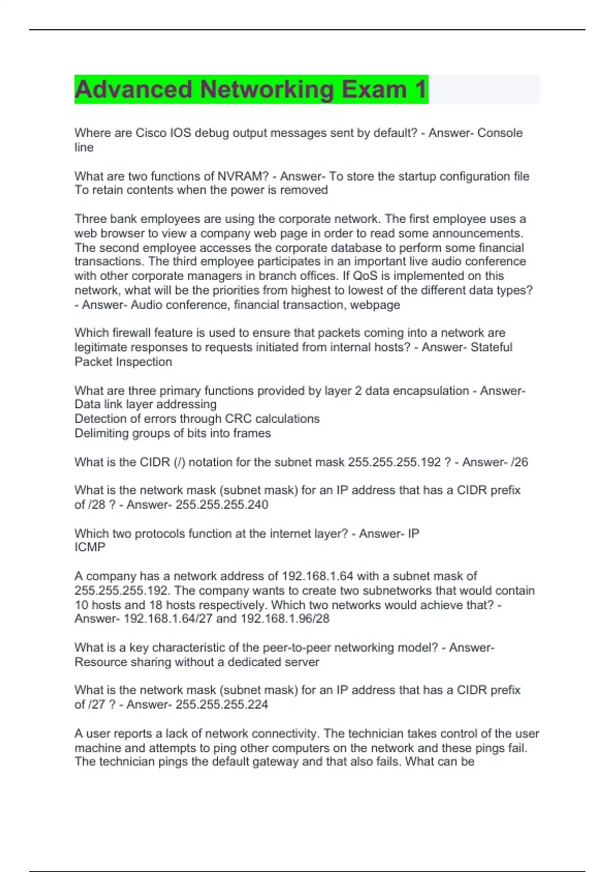 What is the subnet mask for an IP address with a CIDR prefix of /16? - Answer- 255.255.0.0