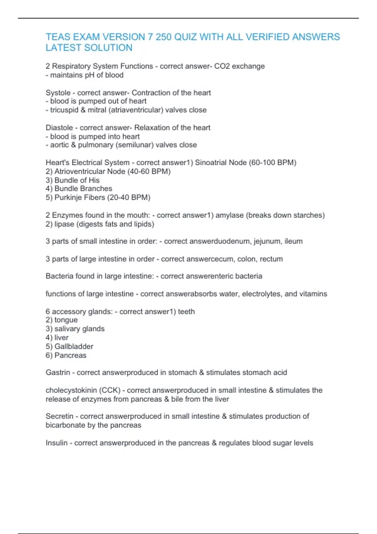 TEAS EXAM VERSION 7 250 QUIZ WITH ALL VERIFIED ANSWERS LATEST SOLUTION