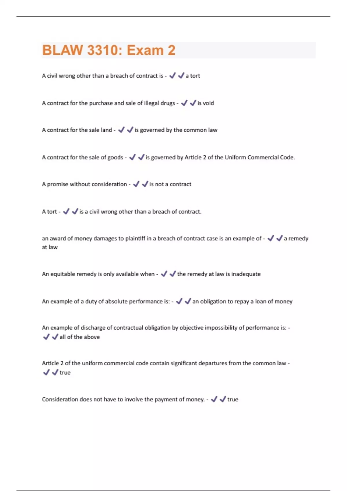 BLAW 3310: Exam 2 Updated 2024/2025 Actual Questions and answers with complete solutions