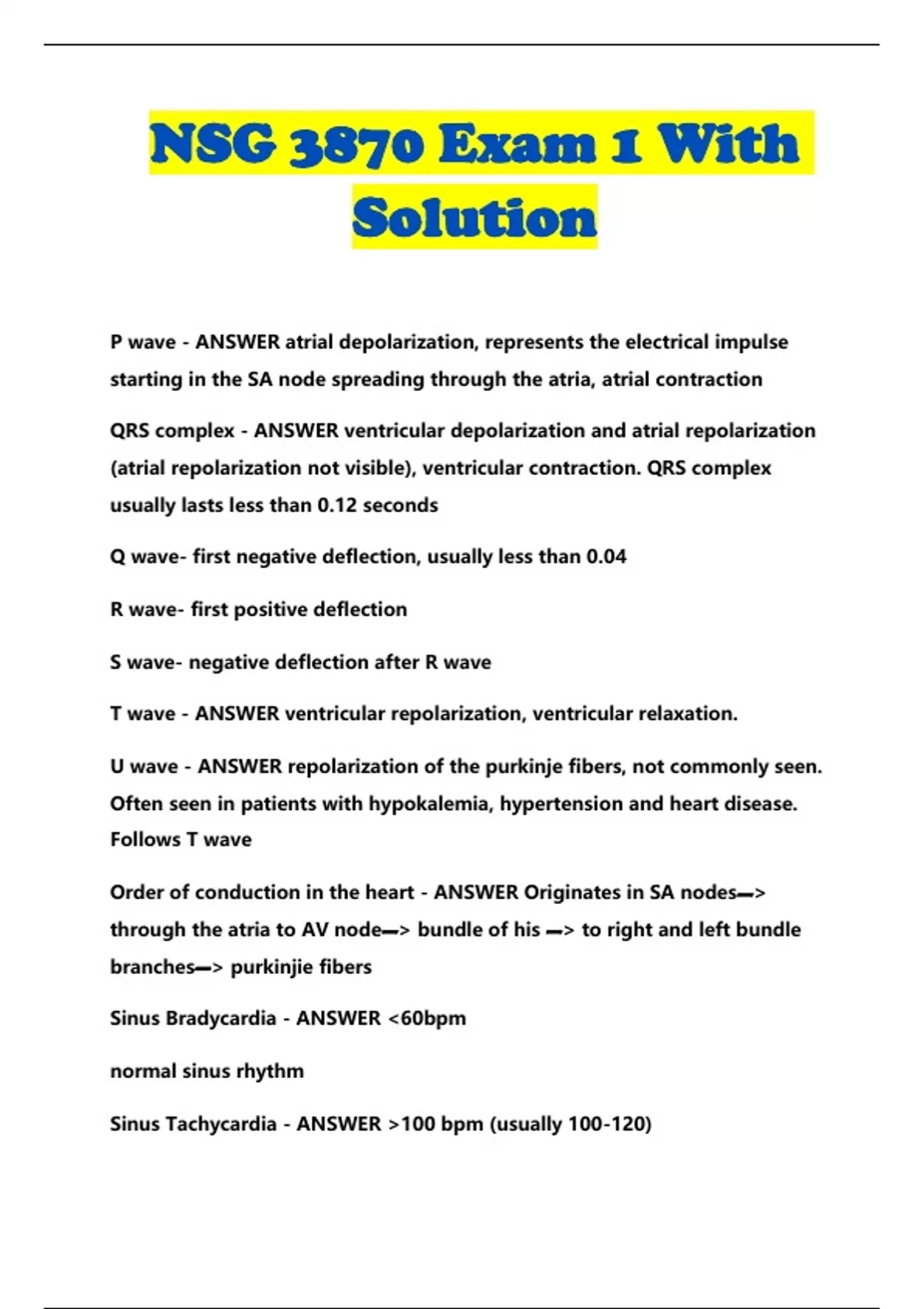 nsg 3870 exam 1 with solution