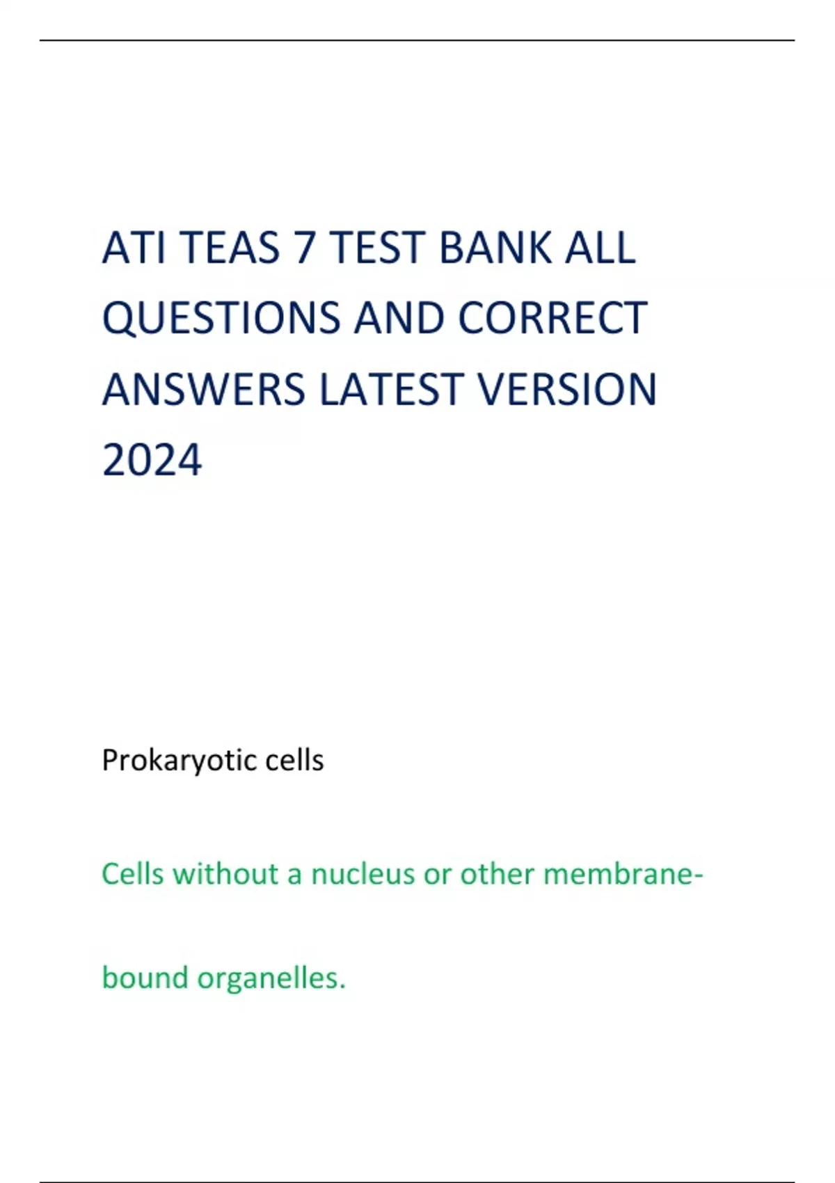 ATI TEAS 7 TEST BANK ALL QUESTIONS AND CORRECT ANSWERS LATEST VERSION 2024