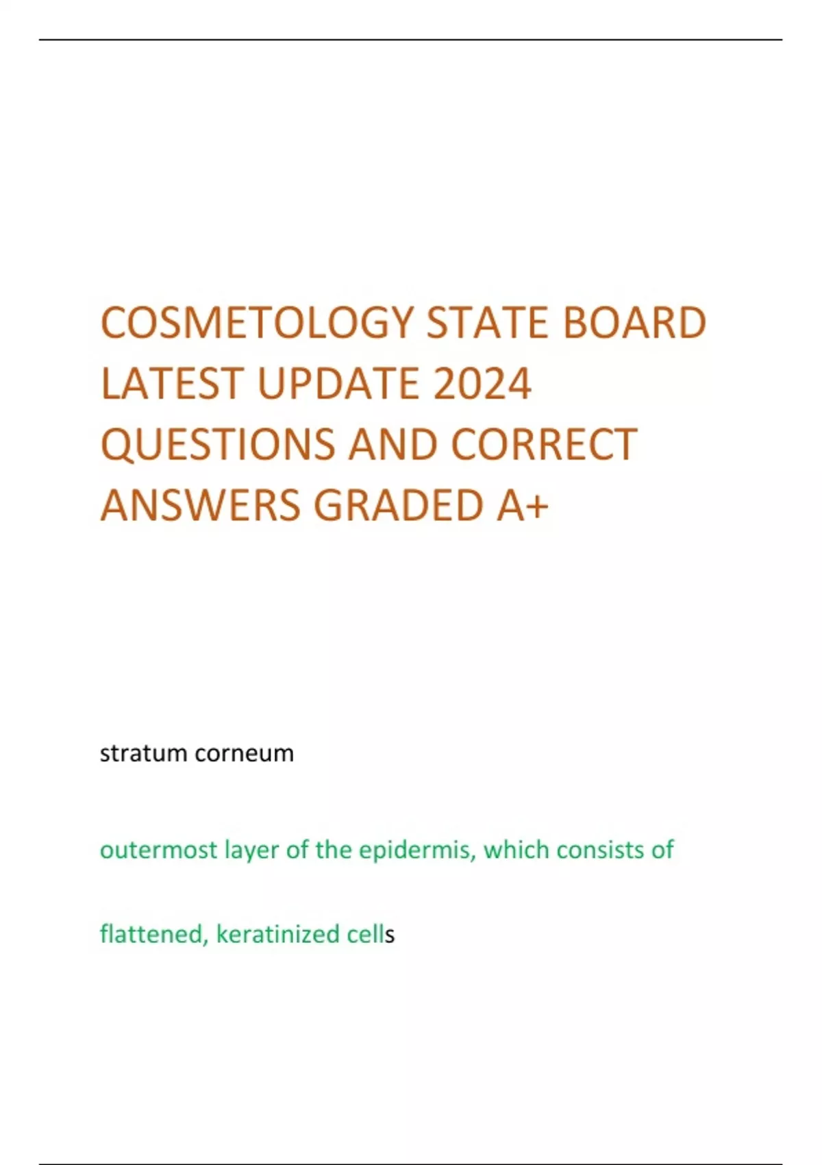 COSMETOLOGY STATE BOARD LATEST UPDATE 2024 QUESTIONS AND CORRECT ANSWERS GRADED A+