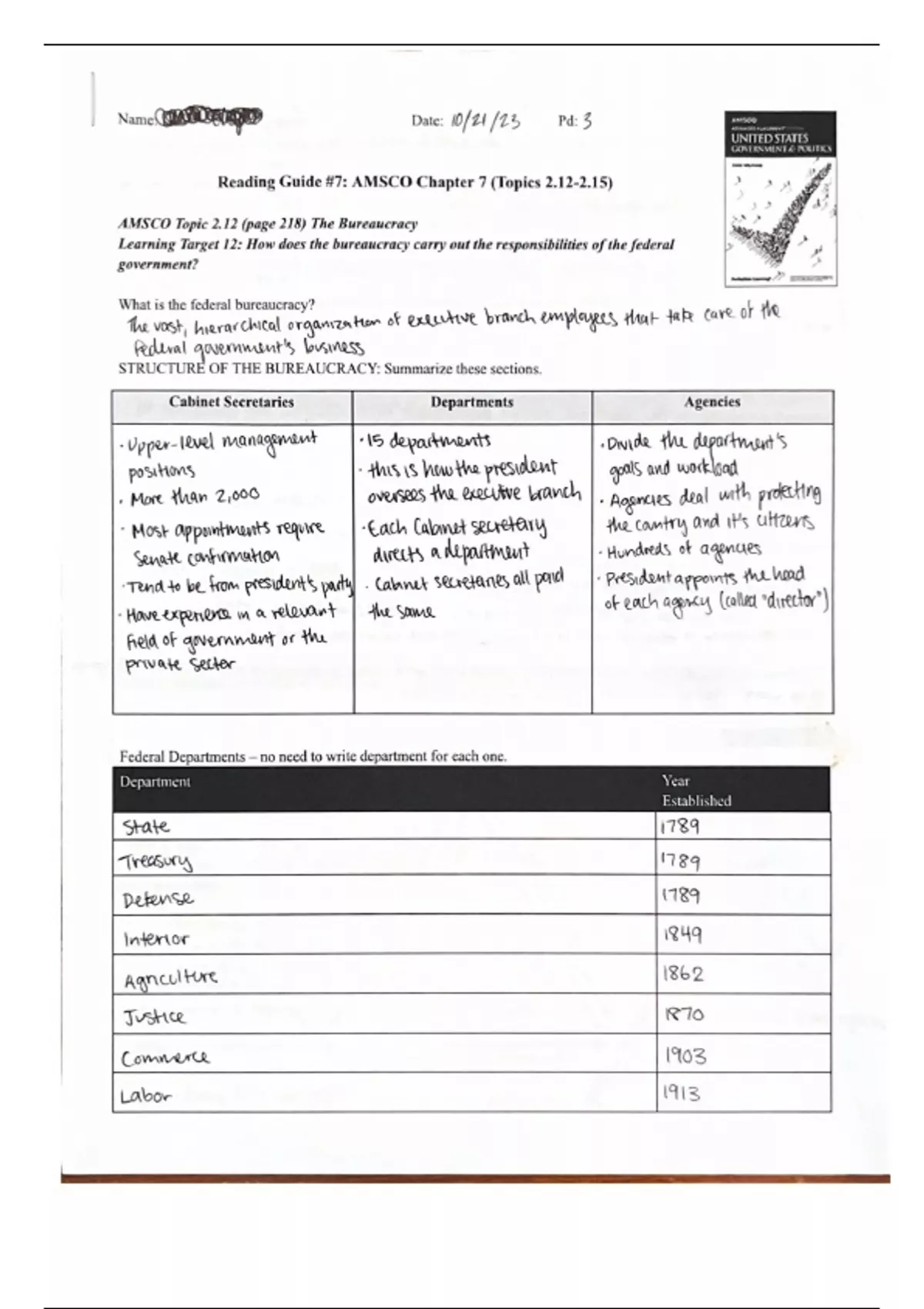 AP US Gov - AMSCO Reading Guide and Vocab Unit 2 Chapter 7 (Topics 2.12-2.15)