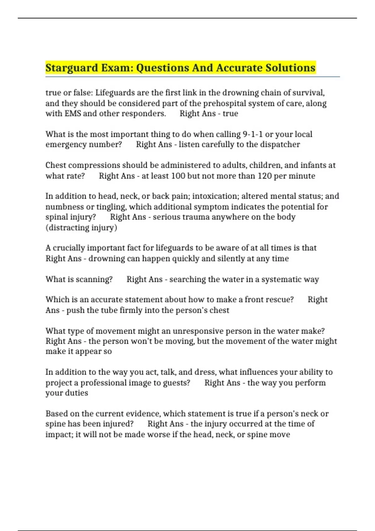 starguard exam questions and accurate solutions