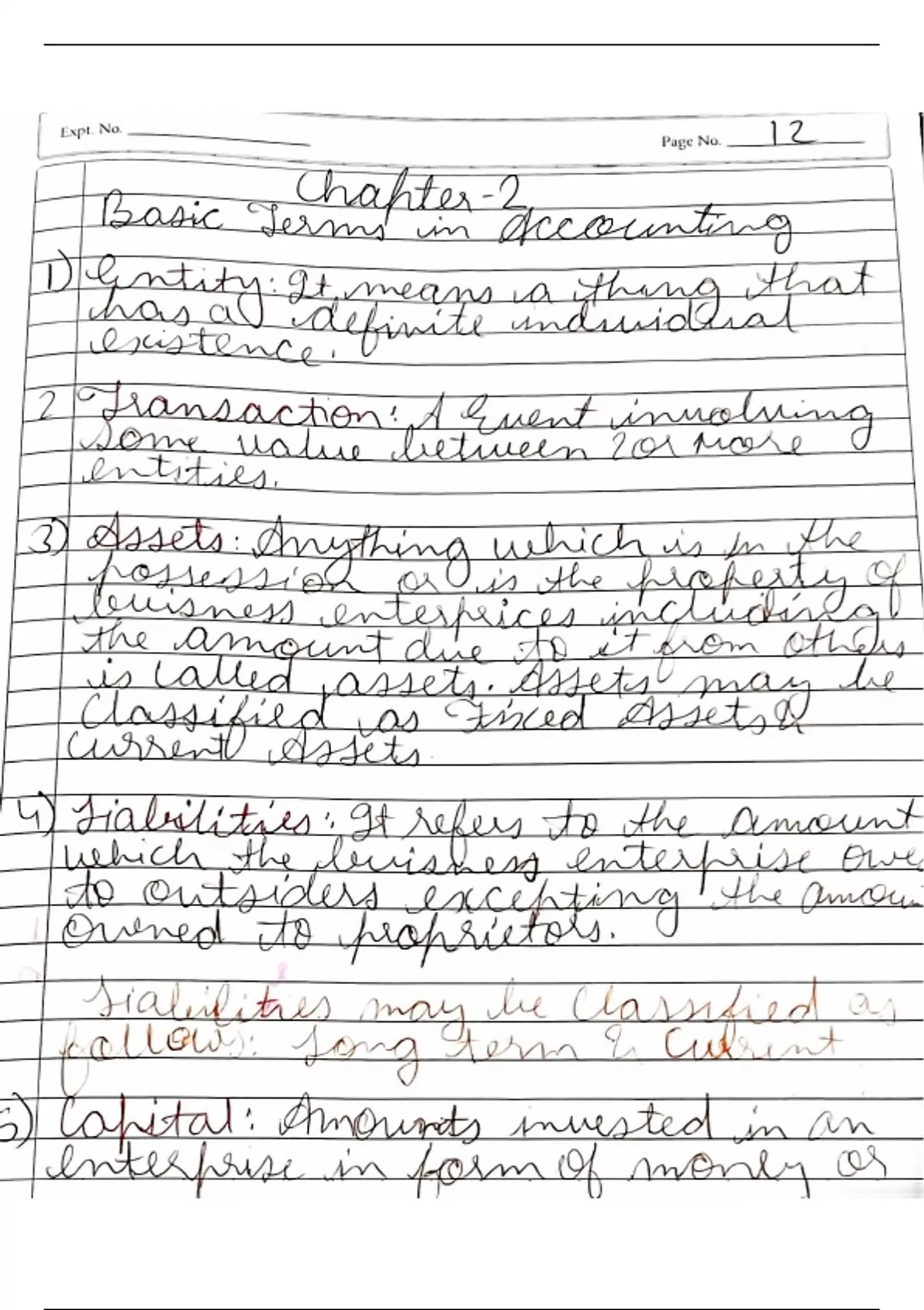 Class 11 accounts chapter 2 basic terms cbse ncert handwritten notes