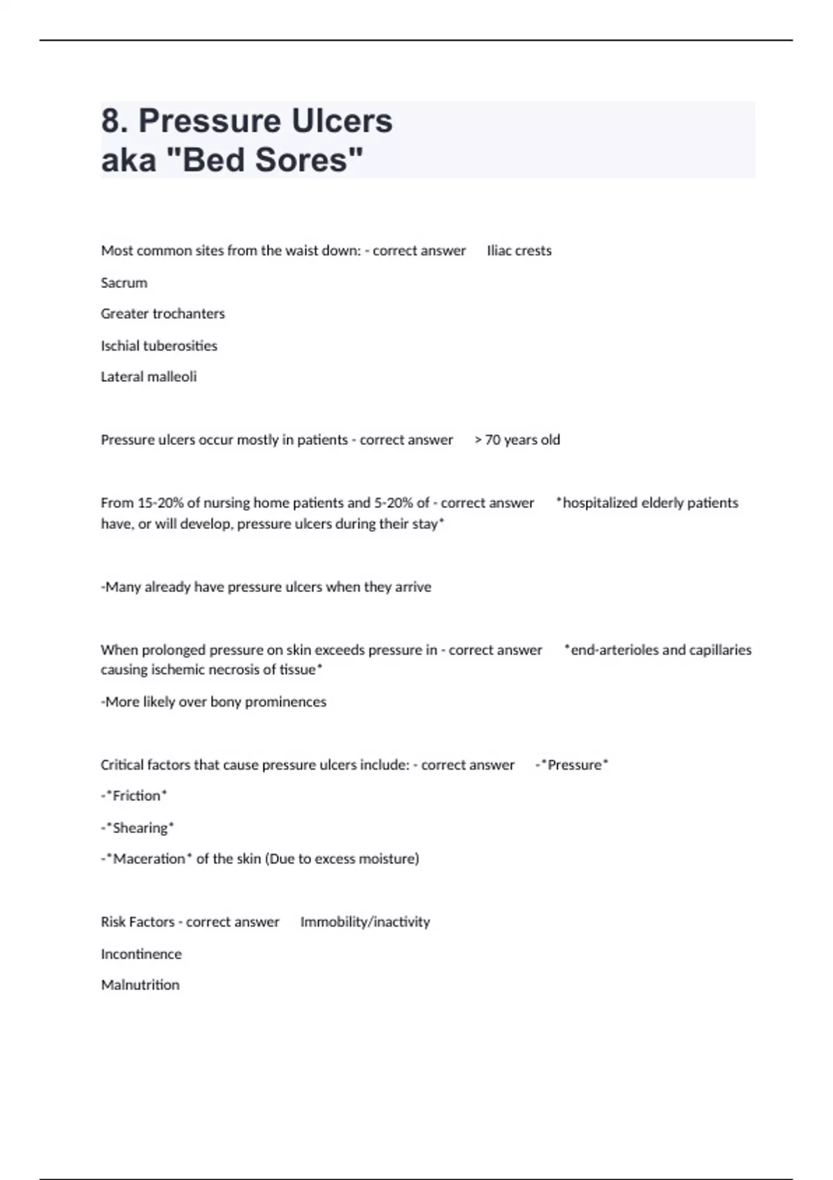8. Pressure Ulcers aka "Bed Sores" Proctored Exam Questions Fully Solved.