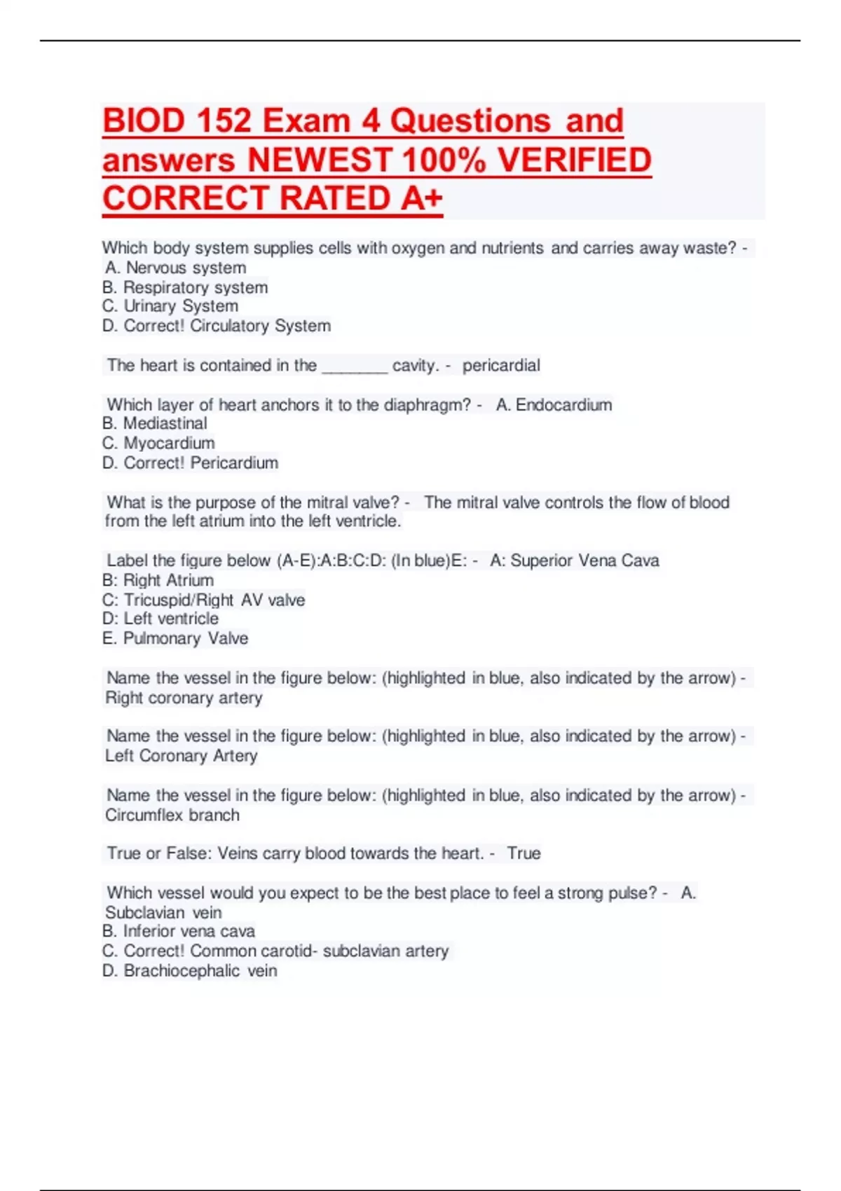 BIOD 152 Exam 4 Questions and answers NEWEST 100% VERIFIED CORRECT RATED A+