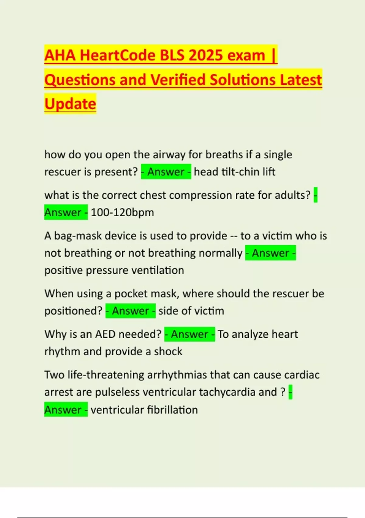 AHA HeartCode BLS 2025 exam | Questions and Verified Solutions Latest Update