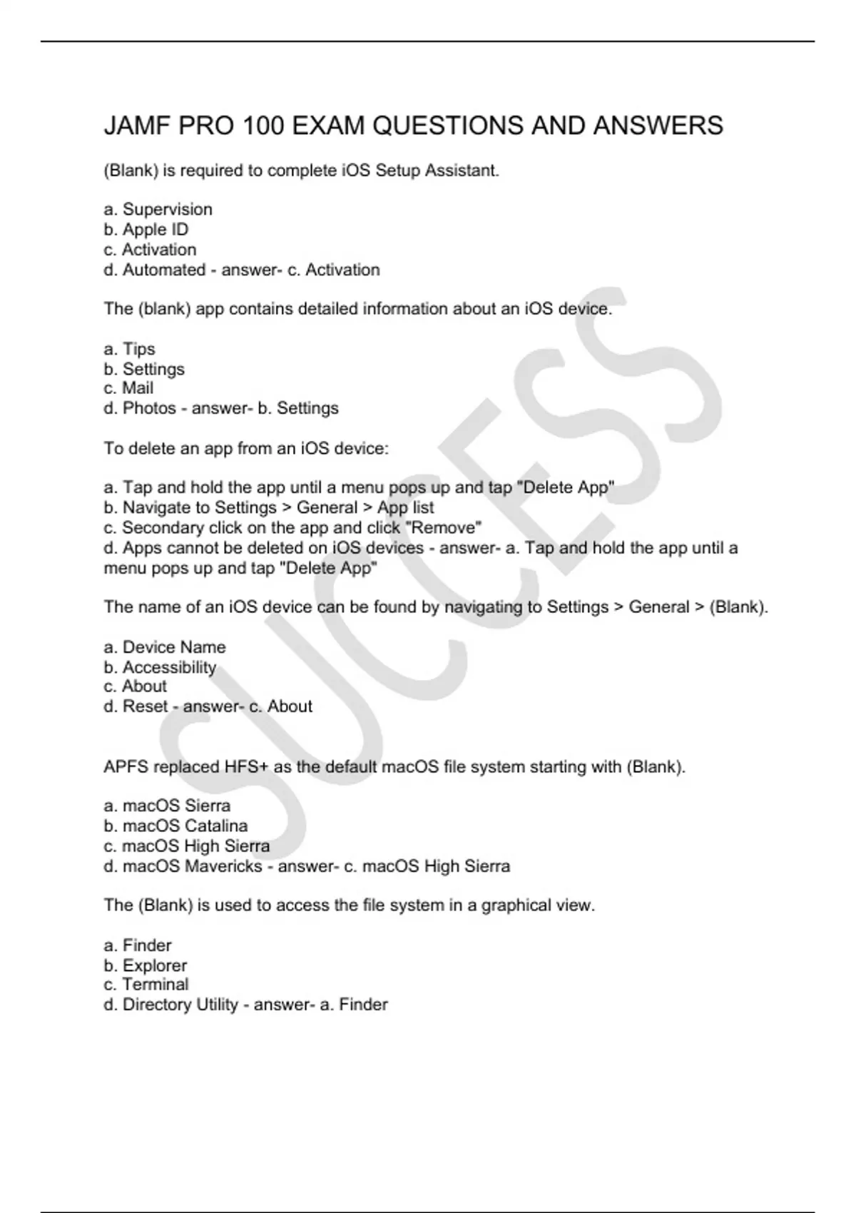 JAMF PRO 100 EXAM QUESTIONS AND ANSWERS (Blank) is required to complete iOS Setup Assistant.