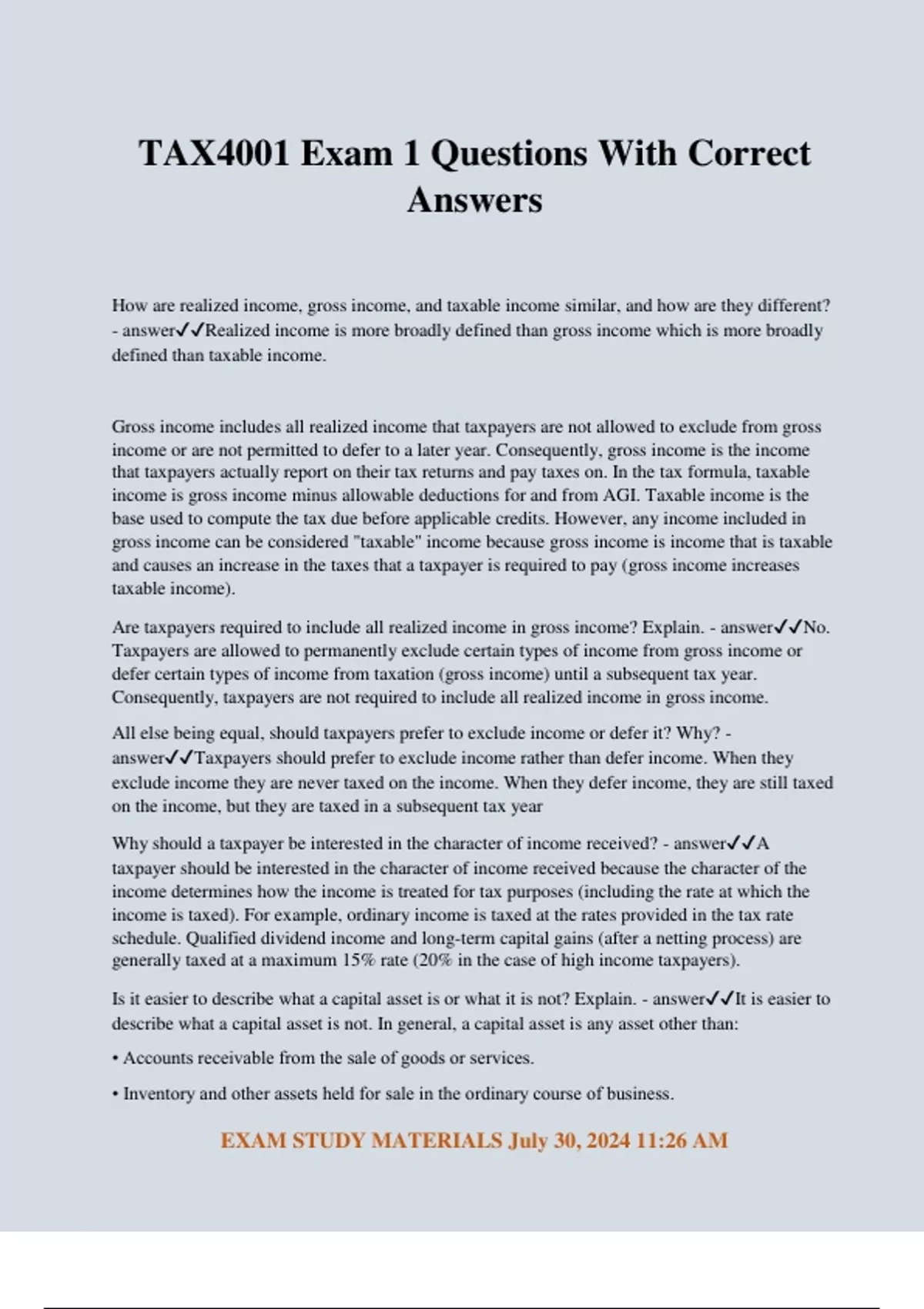 TAX 4001 Exam 2 Questions With Correct Answers