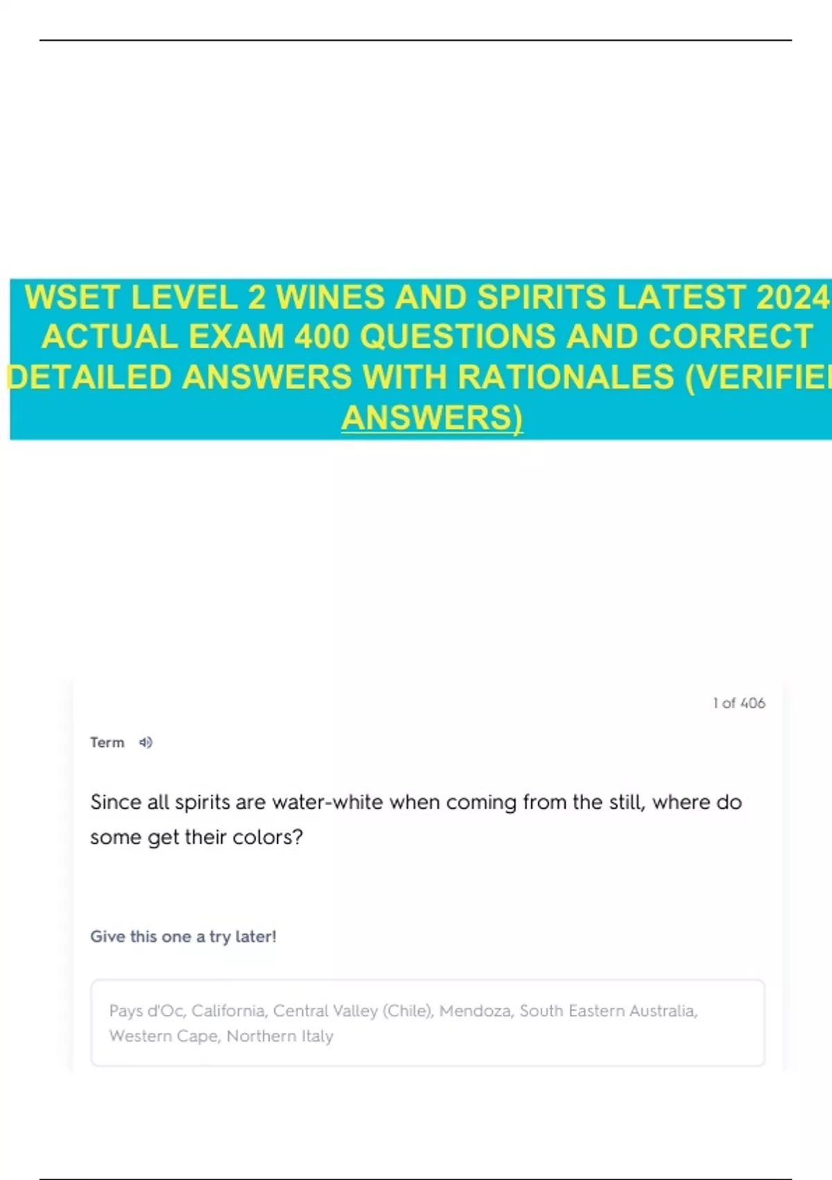WSET LEVEL 2 WINES AND SPIRITS LATEST 2024 ACTUAL EXAM 400 QUESTIONS AND CORRECT DETAILED ANSWERS WITH RATIONALES (VERIFIED ANSWERS)