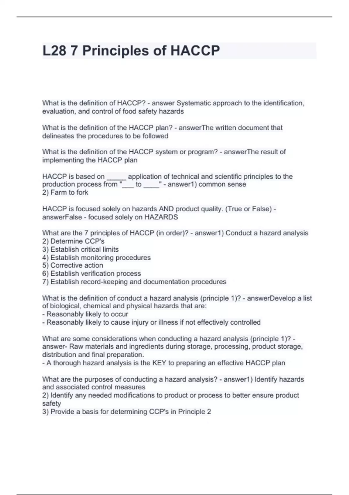 HACCP is focused solely on hazards AND product quality. (True or False) - answerFalse - focused solely on HAZARDS