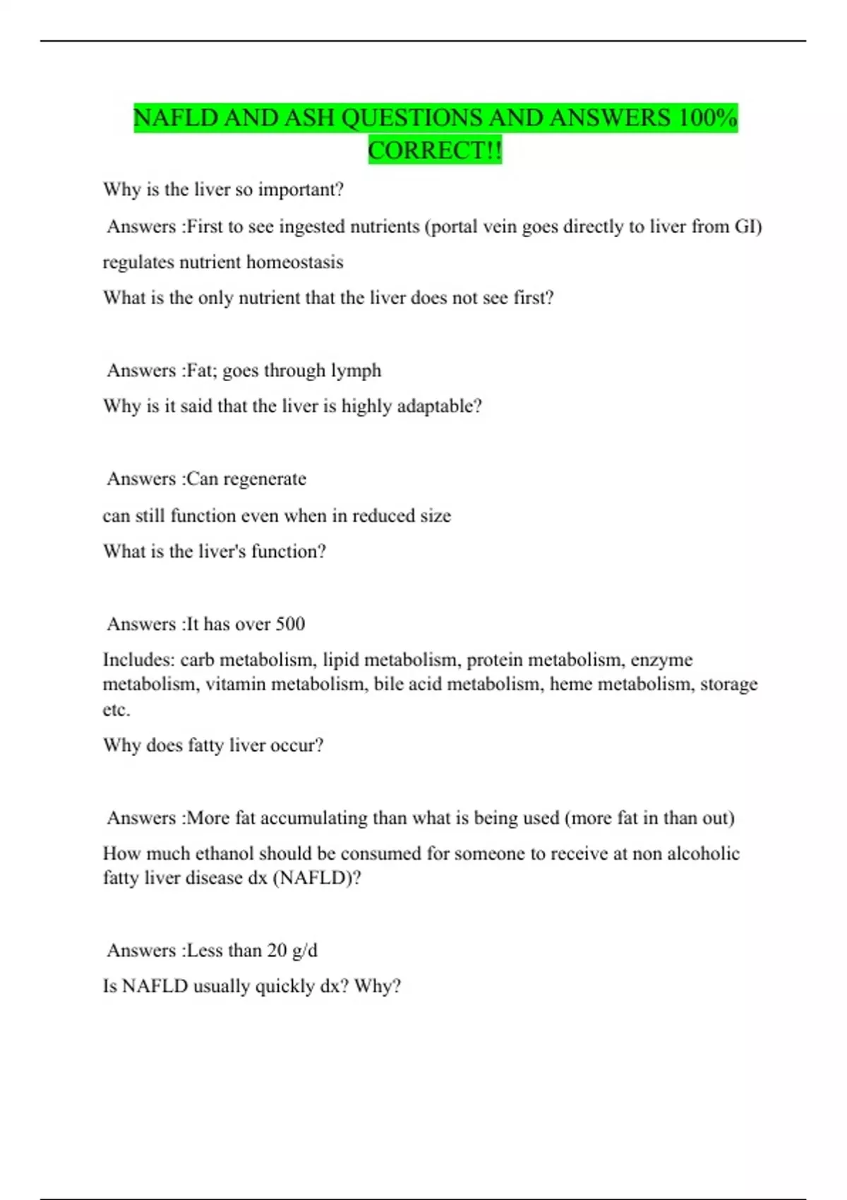 What can NAFLD progress to? Answers :Non alcoholic steatohepatitis (NASH)