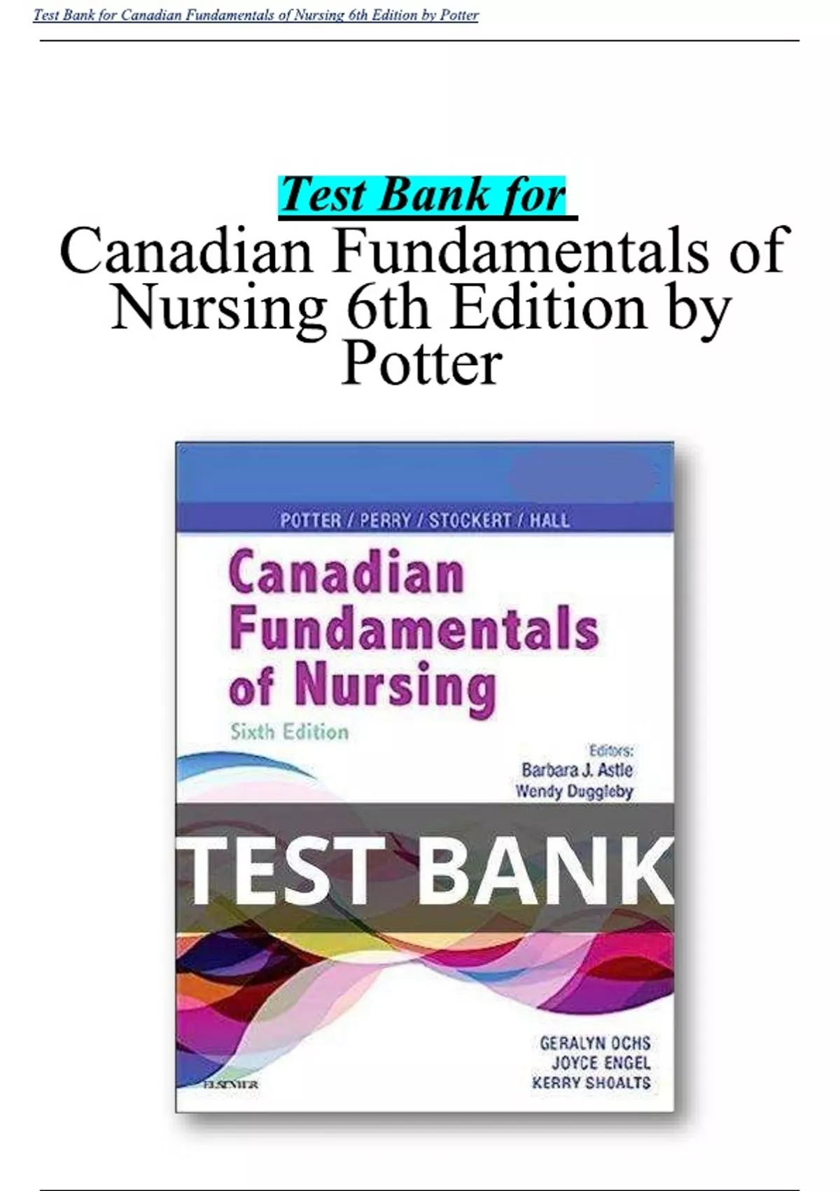 Canadian Fundamentals of Nursing, 6th Edition Test Bank by Potter All chapters 1-48 | A+ ULTIMATE GUIDE