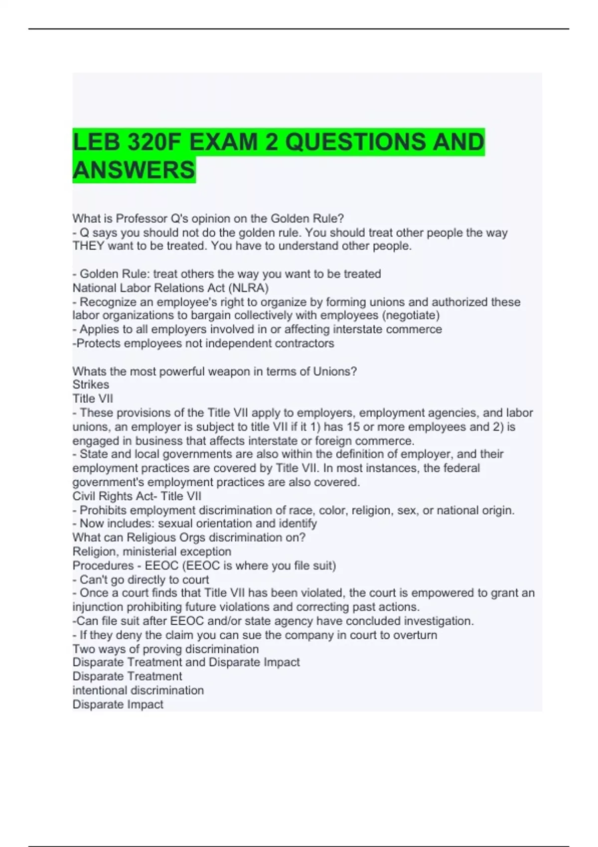 LEB 320F EXAM 2 QUESTIONS AND ANSWERS