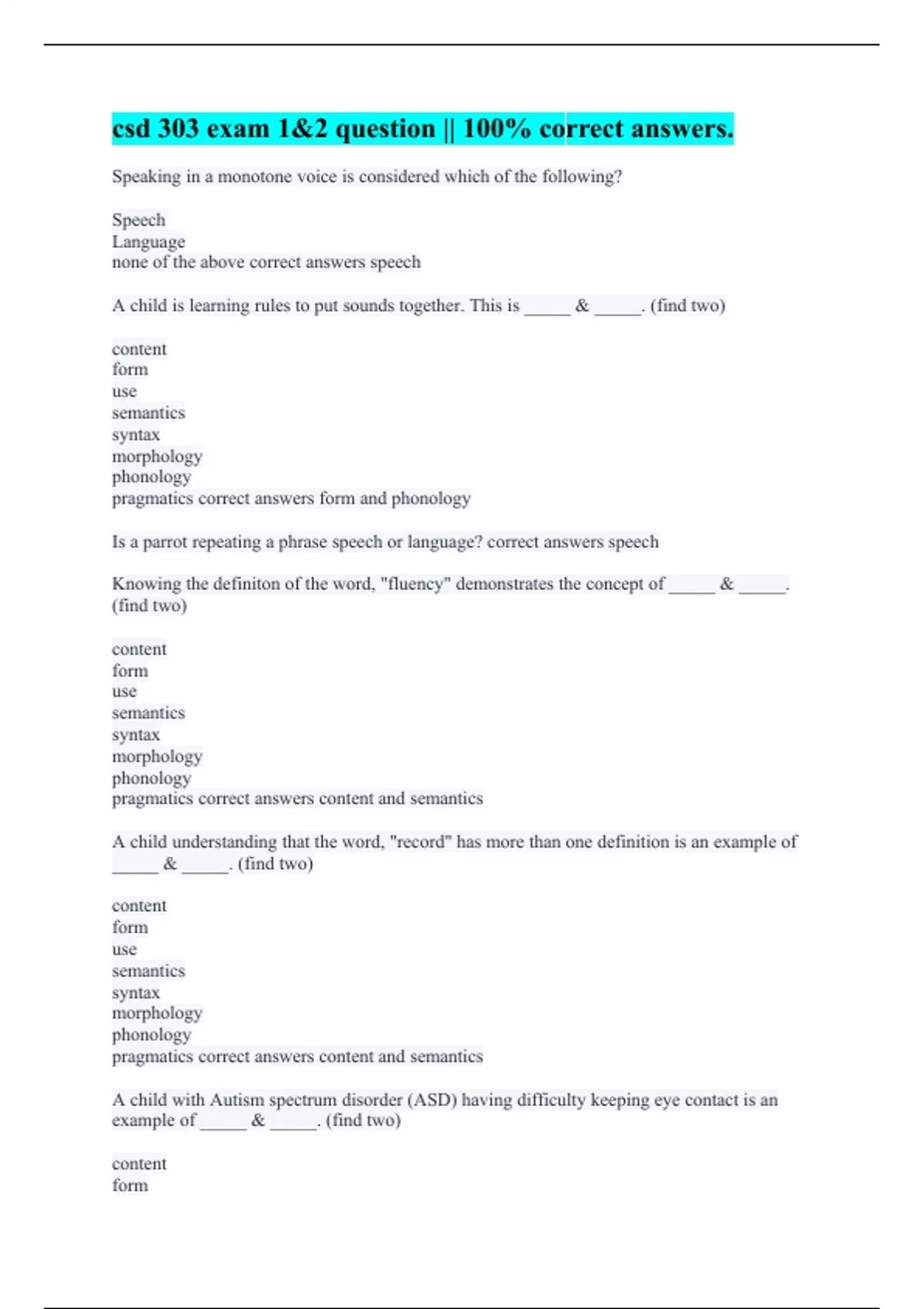 pragmatics correct answers form and phonology