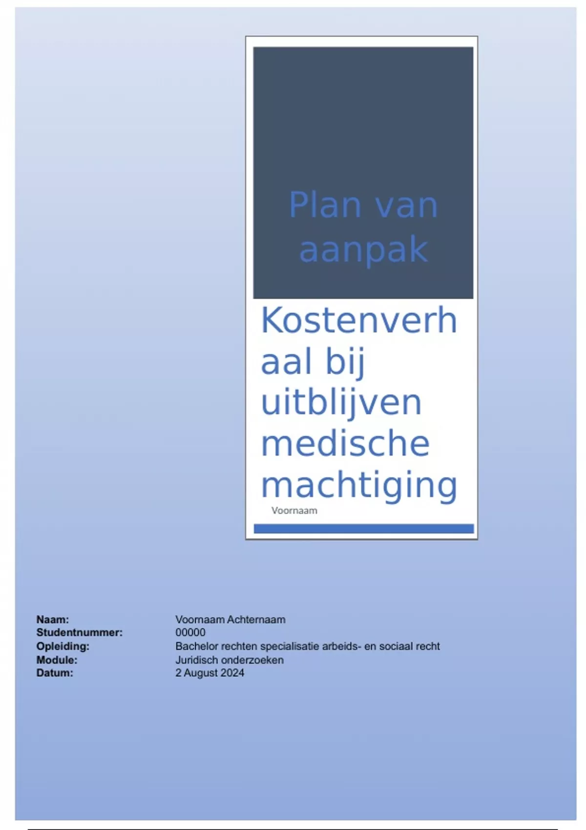 een goedgekeurd plan van aanpak. ideaal voorbeeld voor bij het beginnen van het schrijven van een plan van aanpak. plan is met voldoende beoordeeld. zonder goedgekeurd plan kan je niet afstuderen. Plan is geschreven voor afstuderen bij NCOI.