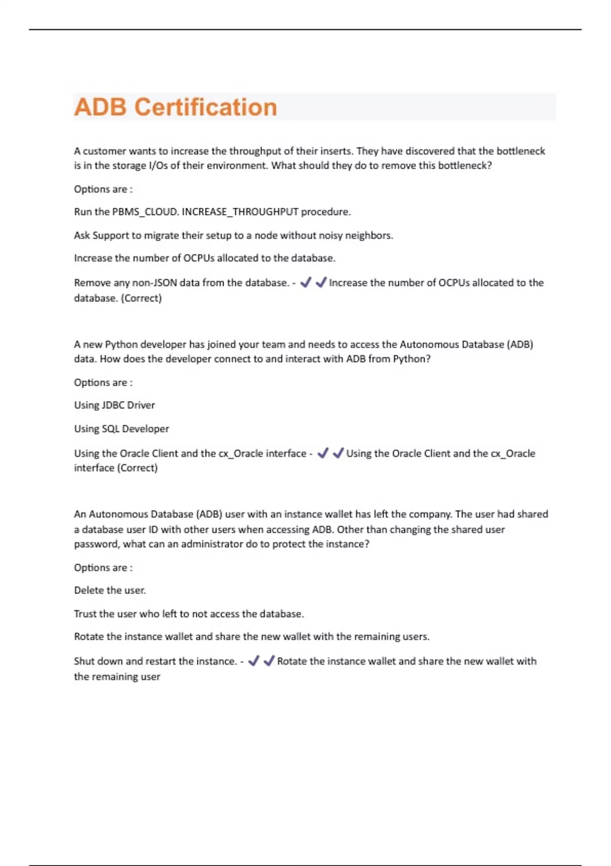 Remove any non-JSON data from the database. - Increase the number of OCPUs allocated to the