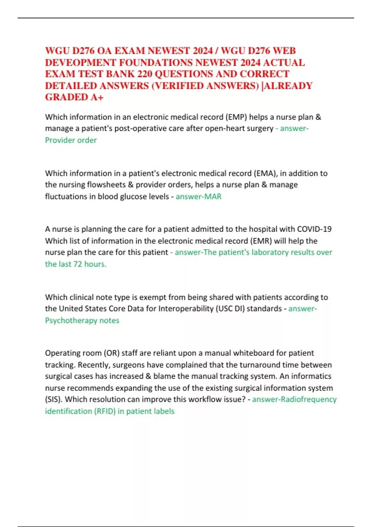 WGU D276 OA EXAM NEWEST 2024 / WGU D276 WEB