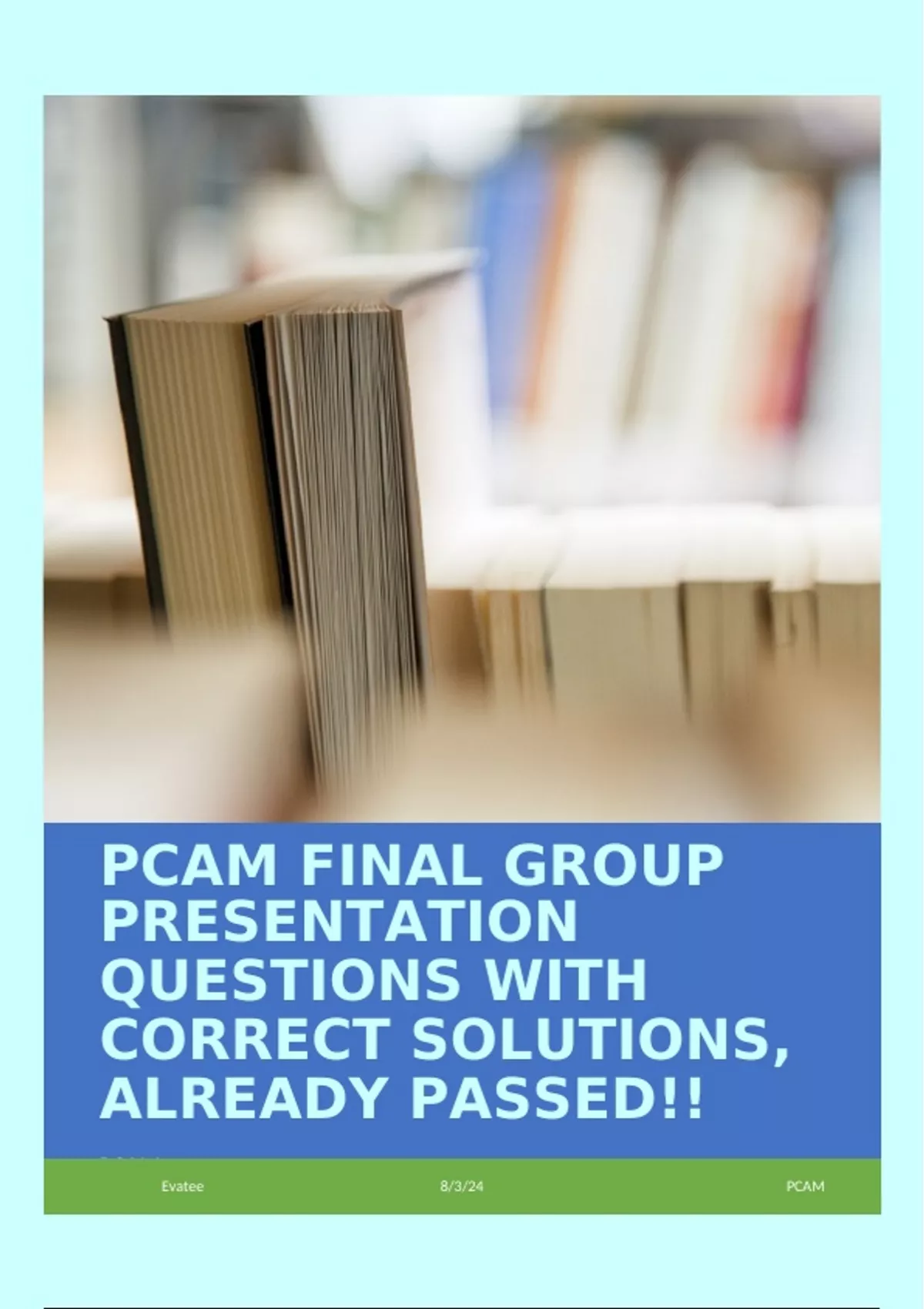PCAM FINAL GROUP PRESENTATION QUESTIONS WITH CORRECT SOLUTIONS, ALREADY PASSED!!