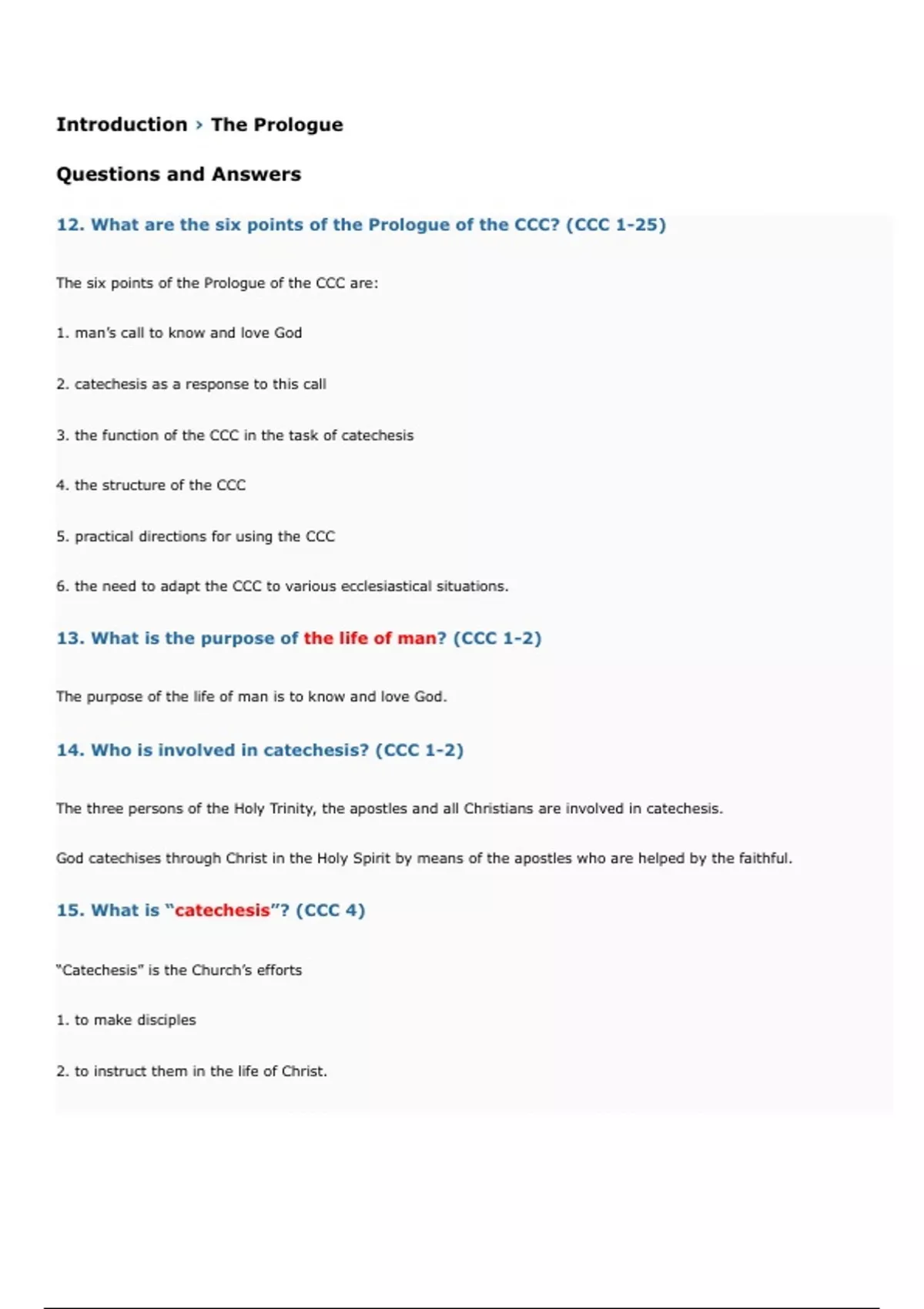 12. What are the six points of the Prologue of the CCC? (CCC 1-25)