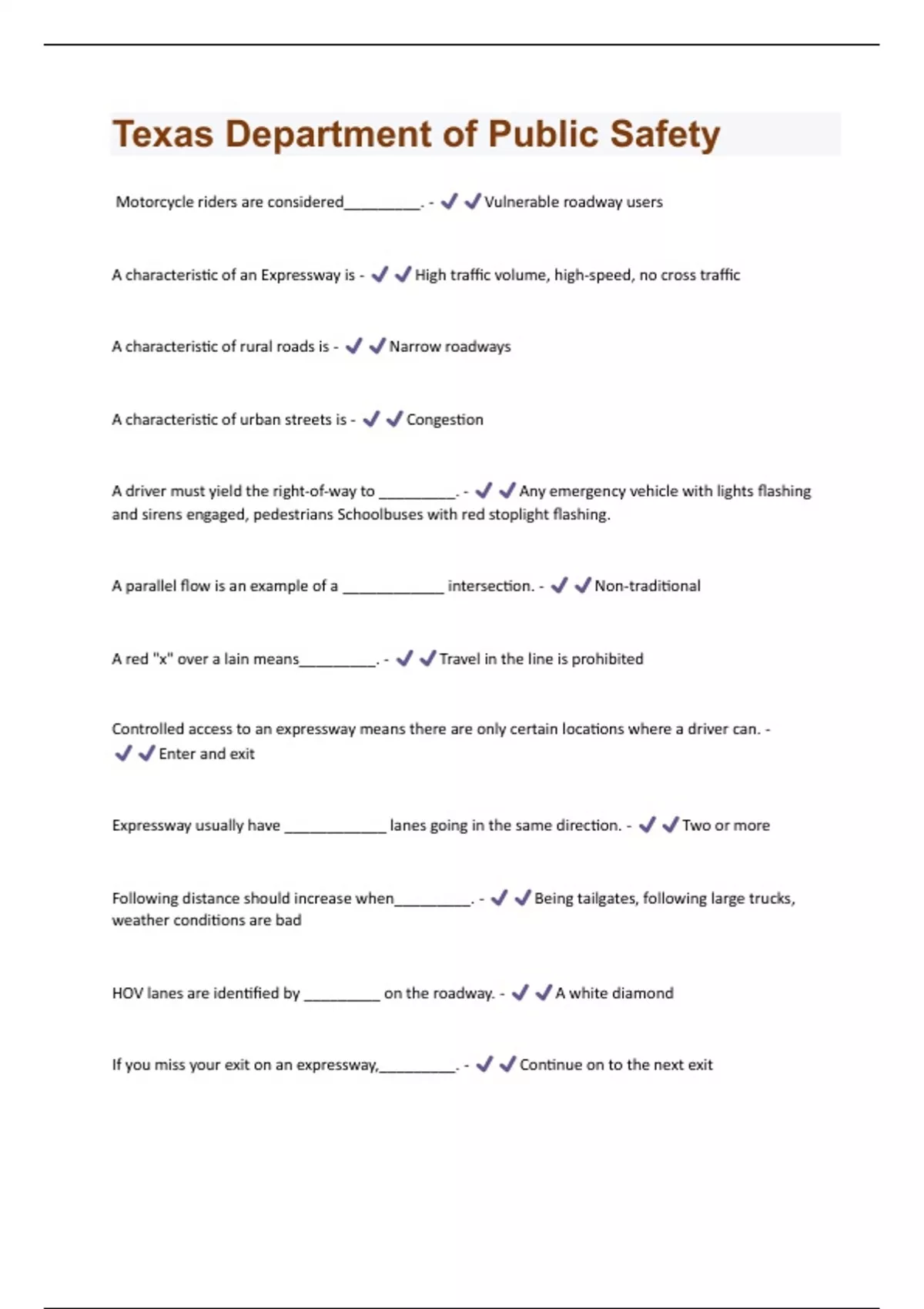 A characteristic of an Expressway is - High traffic volume, high-speed, no cross traffic
