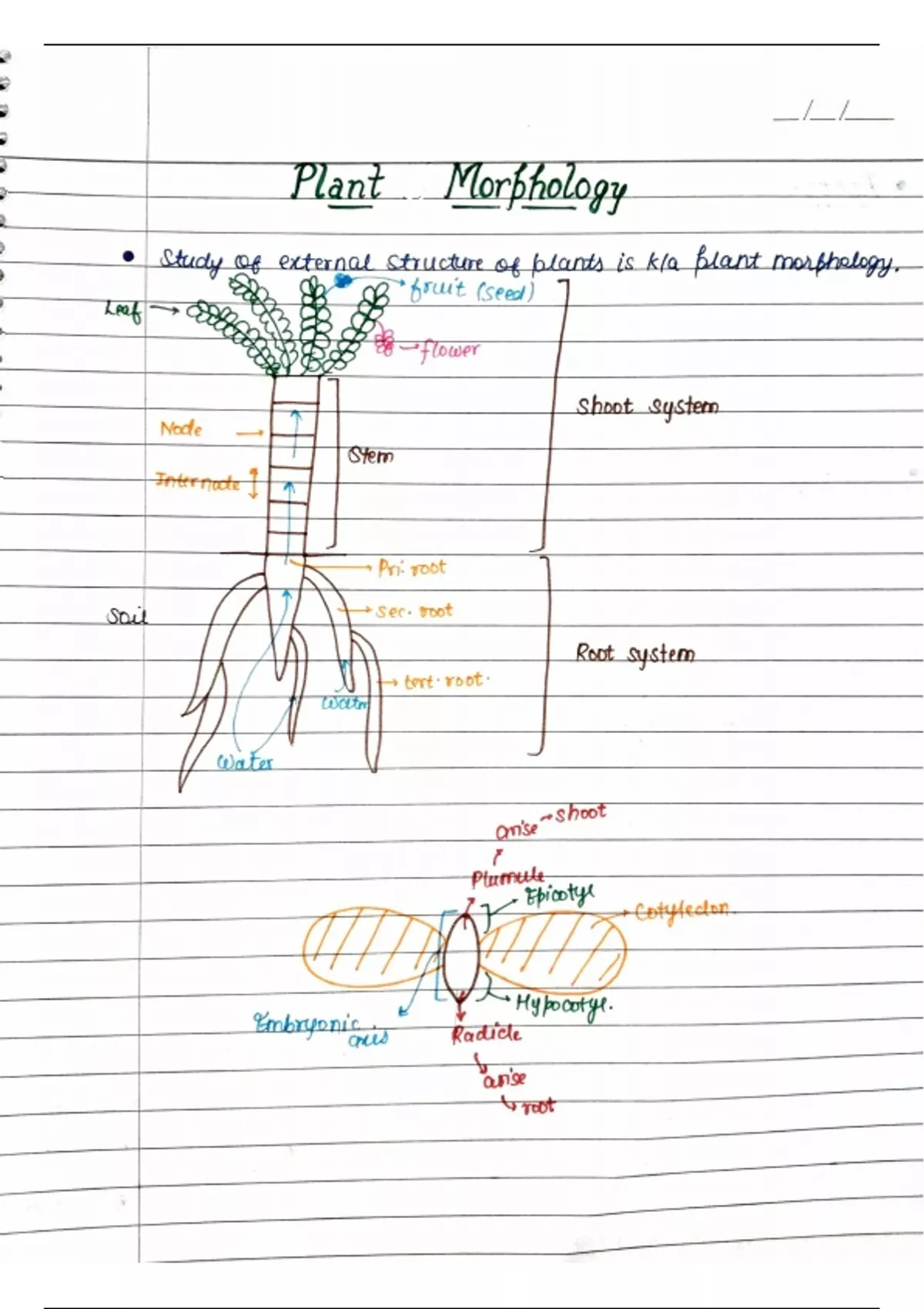 PLANT MORPHOLOGY CLASS 11TH HANDWRITTEN NOTES FOR NEET