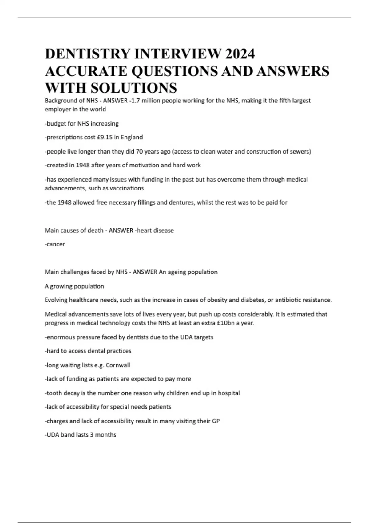 Advantages of NHS - ANSWER -providing patient care and treatment for those who can't afford it