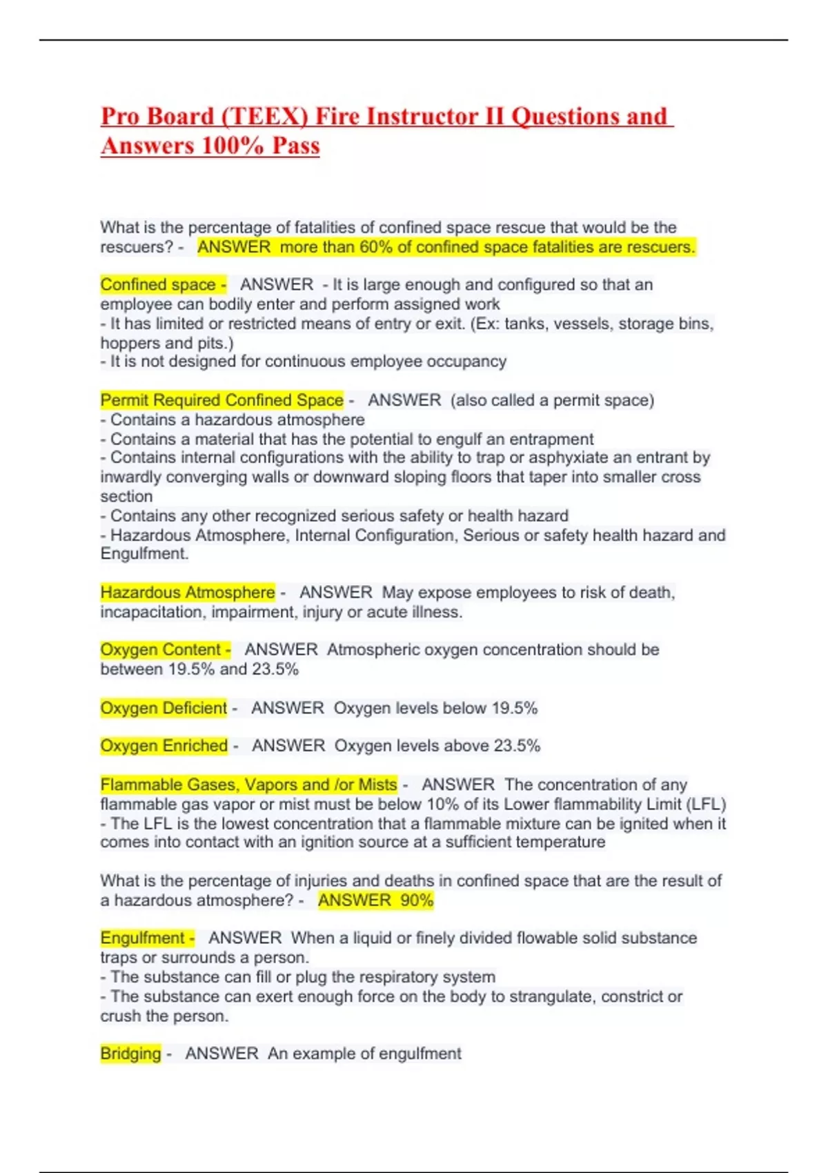 Oxygen Enriched - ANSWER Oxygen levels above 23.5%