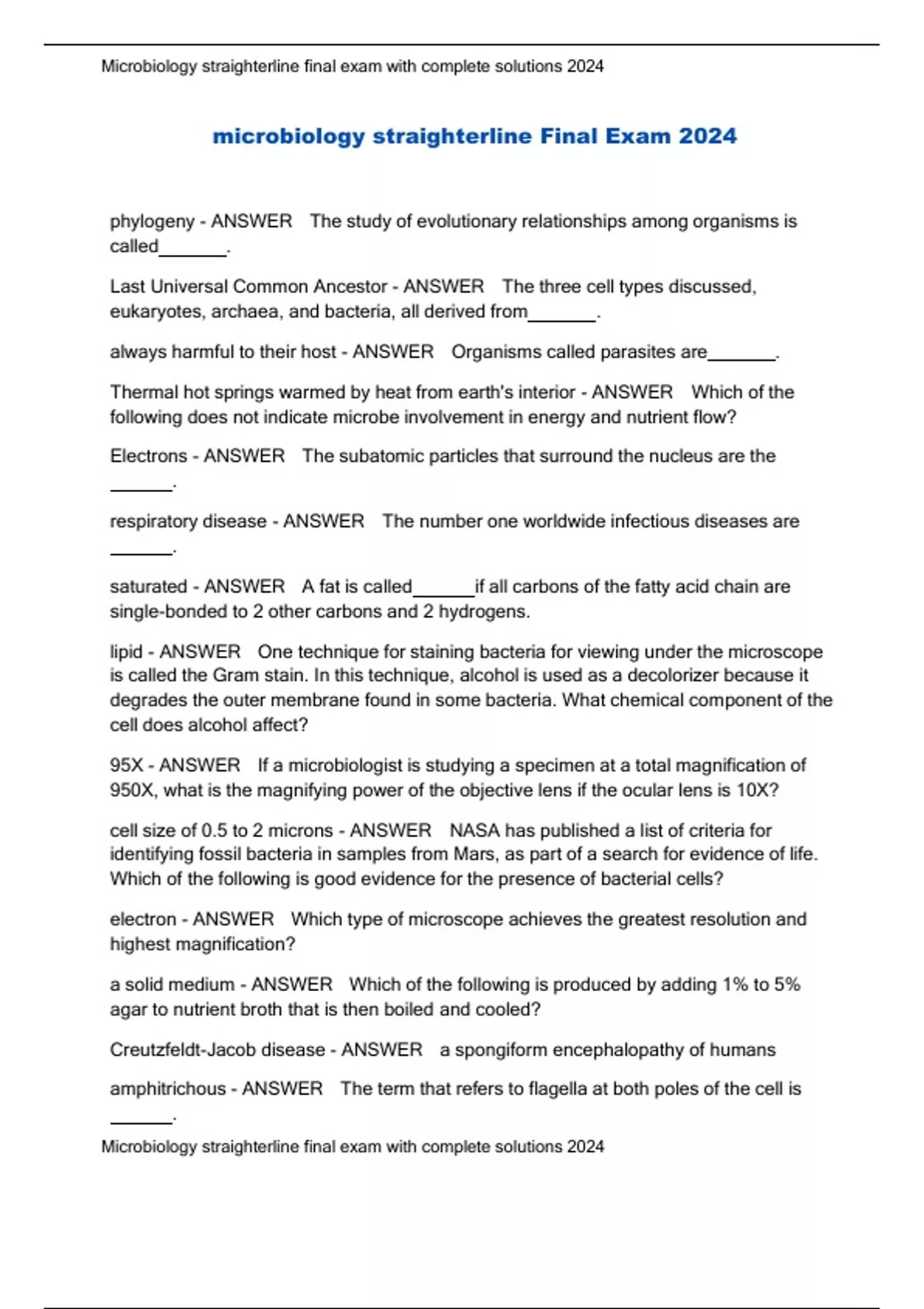 ,Microbiology straighterline final exam with complete solutions 2024