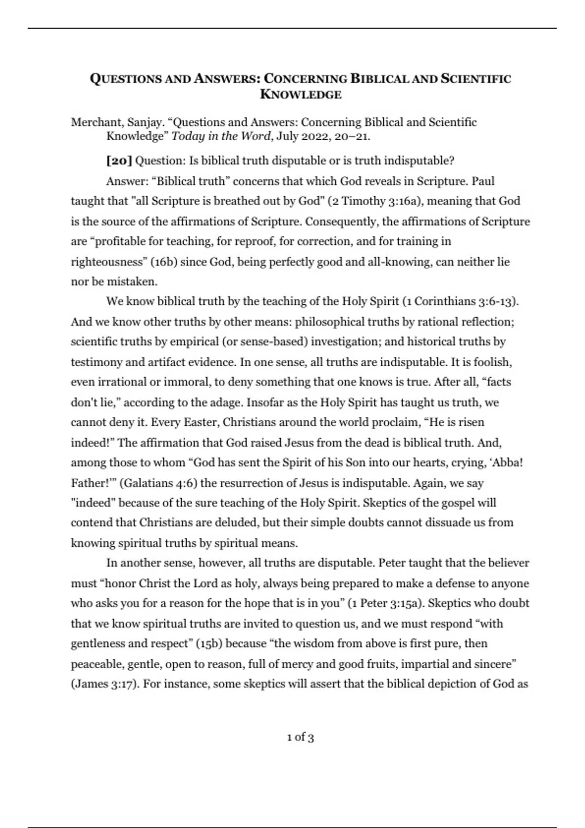 Merchant, Sanjay. “Questions and Answers: Concerning Biblical and Scientific