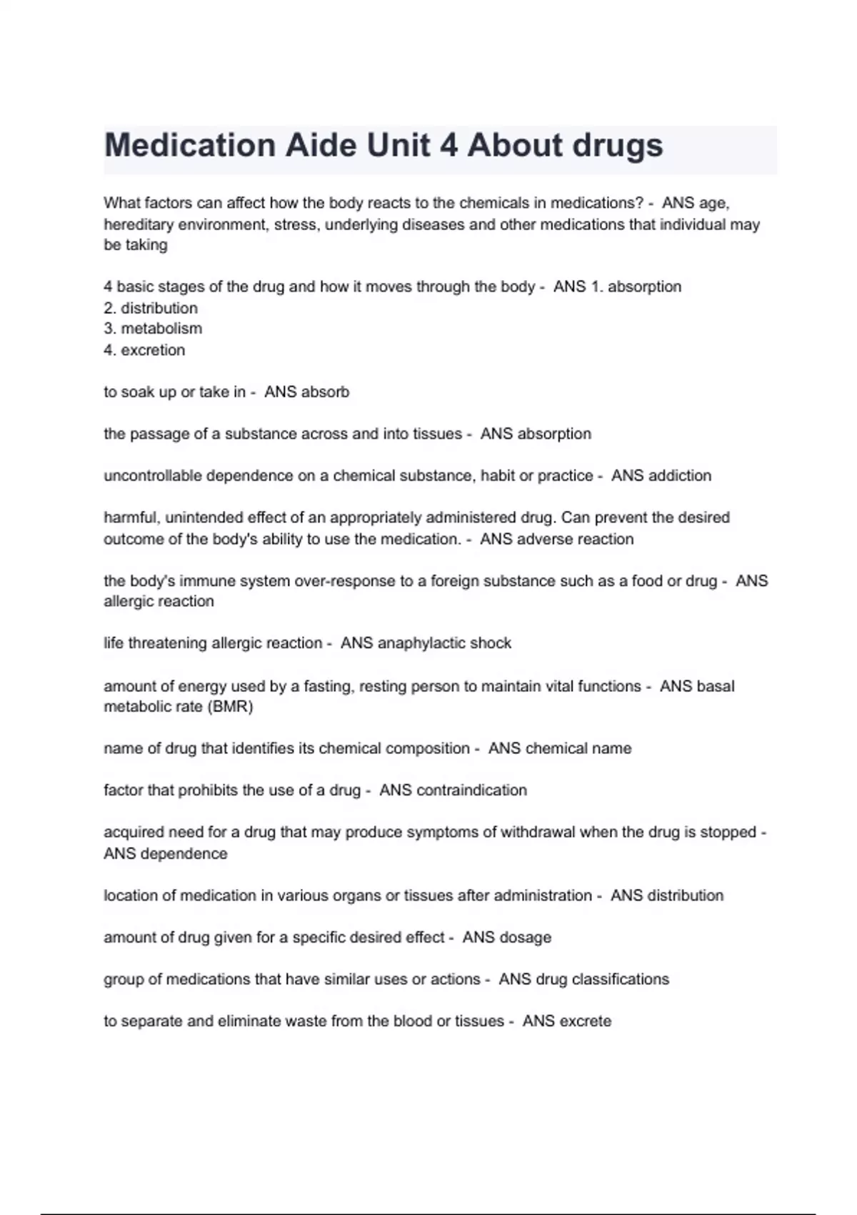 Medication Aide Unit 4 About drugs